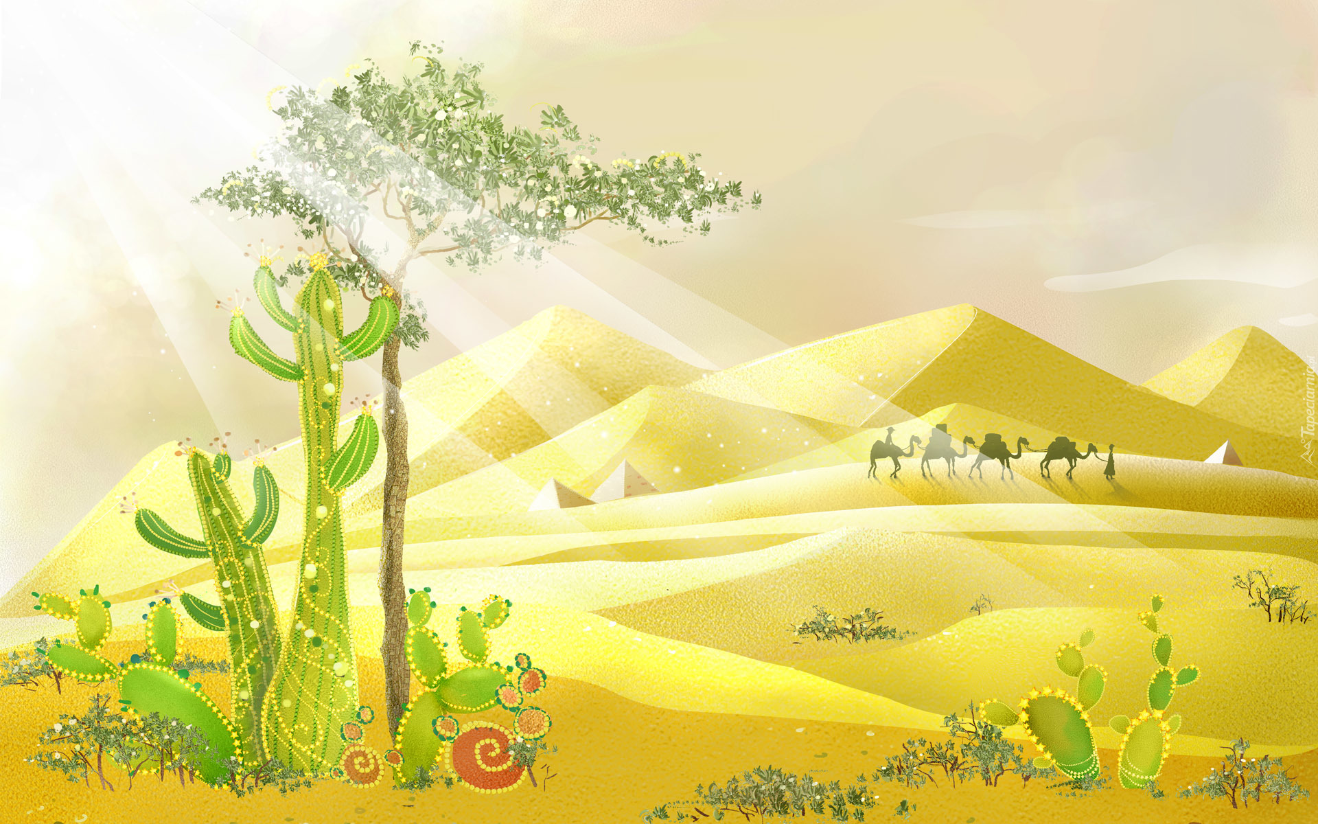 Edytor tapety: Pustynia, Kaktusy, Karawana