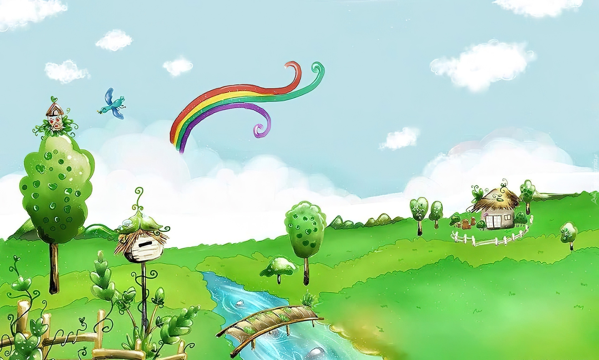 Edytor tapety: Kraina, Fantazji, Drzewa, Rzeczka, Dom