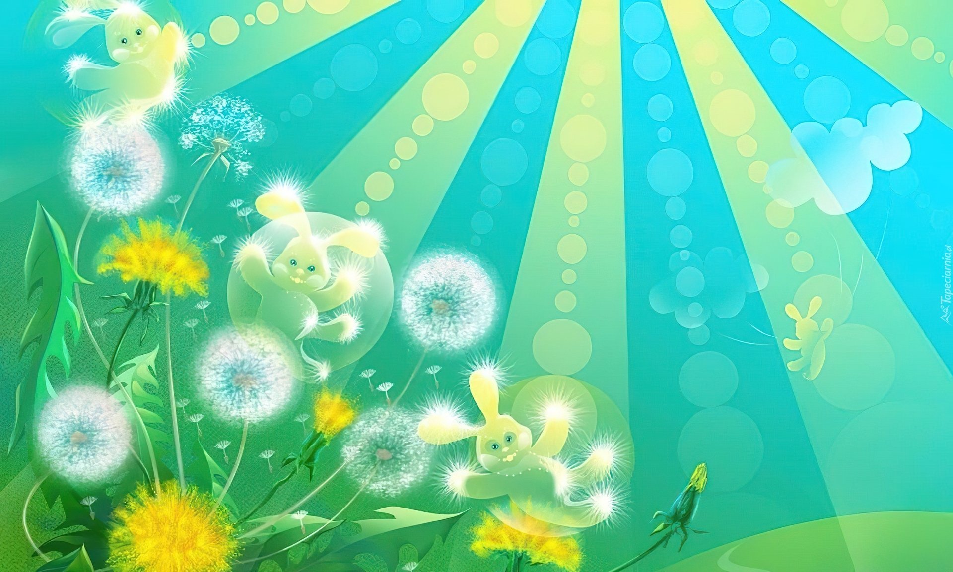 Edytor tapety: Dmuchawce, Króliczki, Promienie