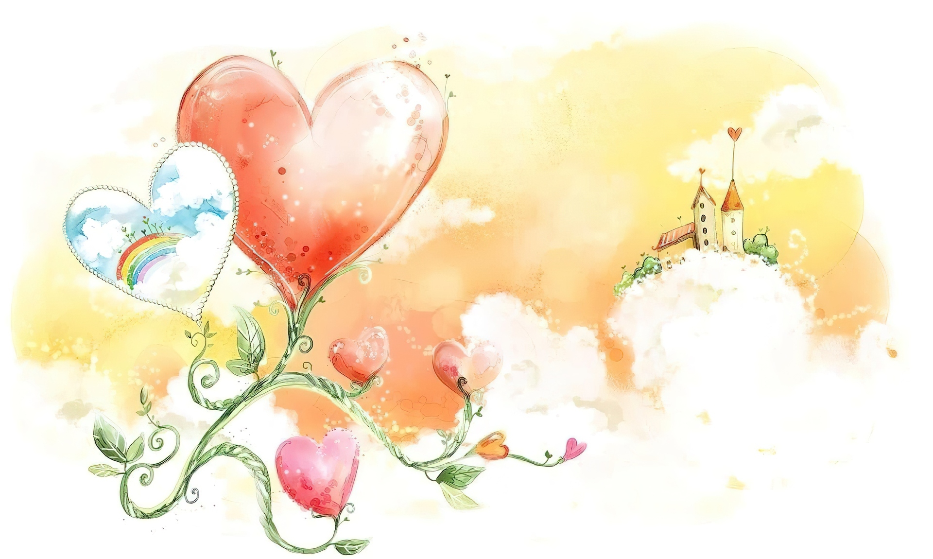 Edytor tapety: Serca, Chmury, Zamek