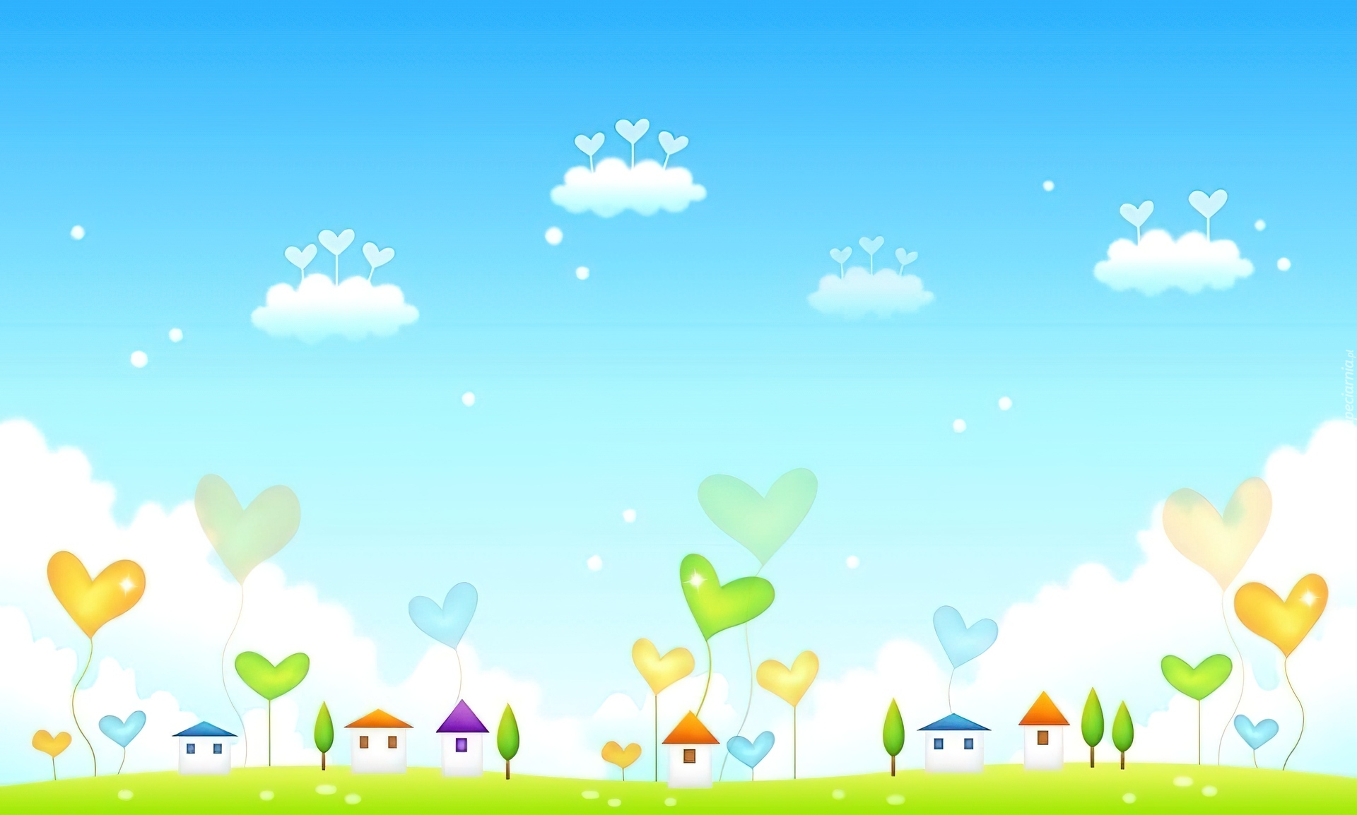 Edytor tapety: Domki, Drzewa, Serca, Chmury, Fantazja