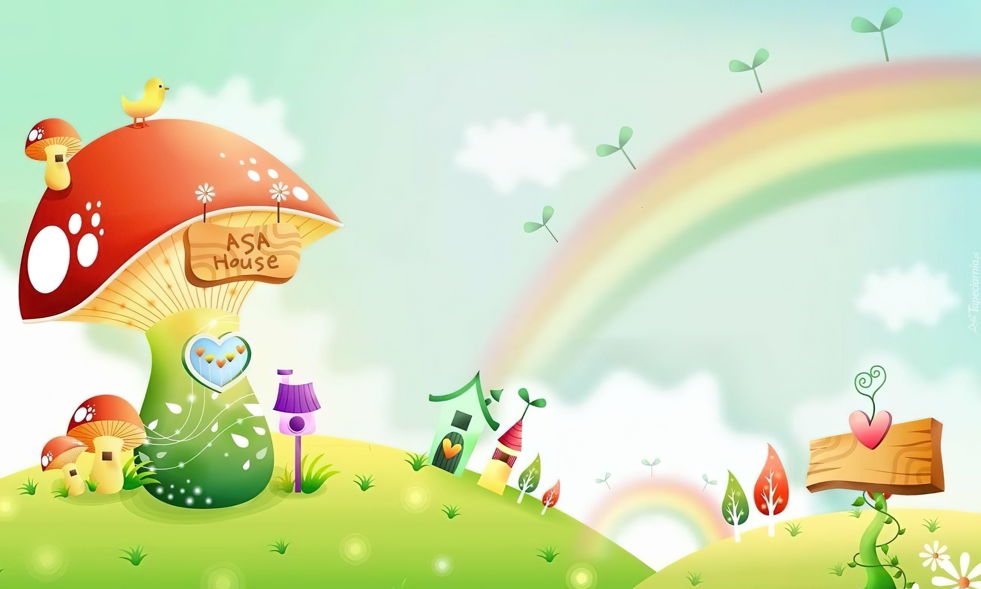 Edytor tapety: Kraina, Fantazji, Grzybki, Domki, Tęcza