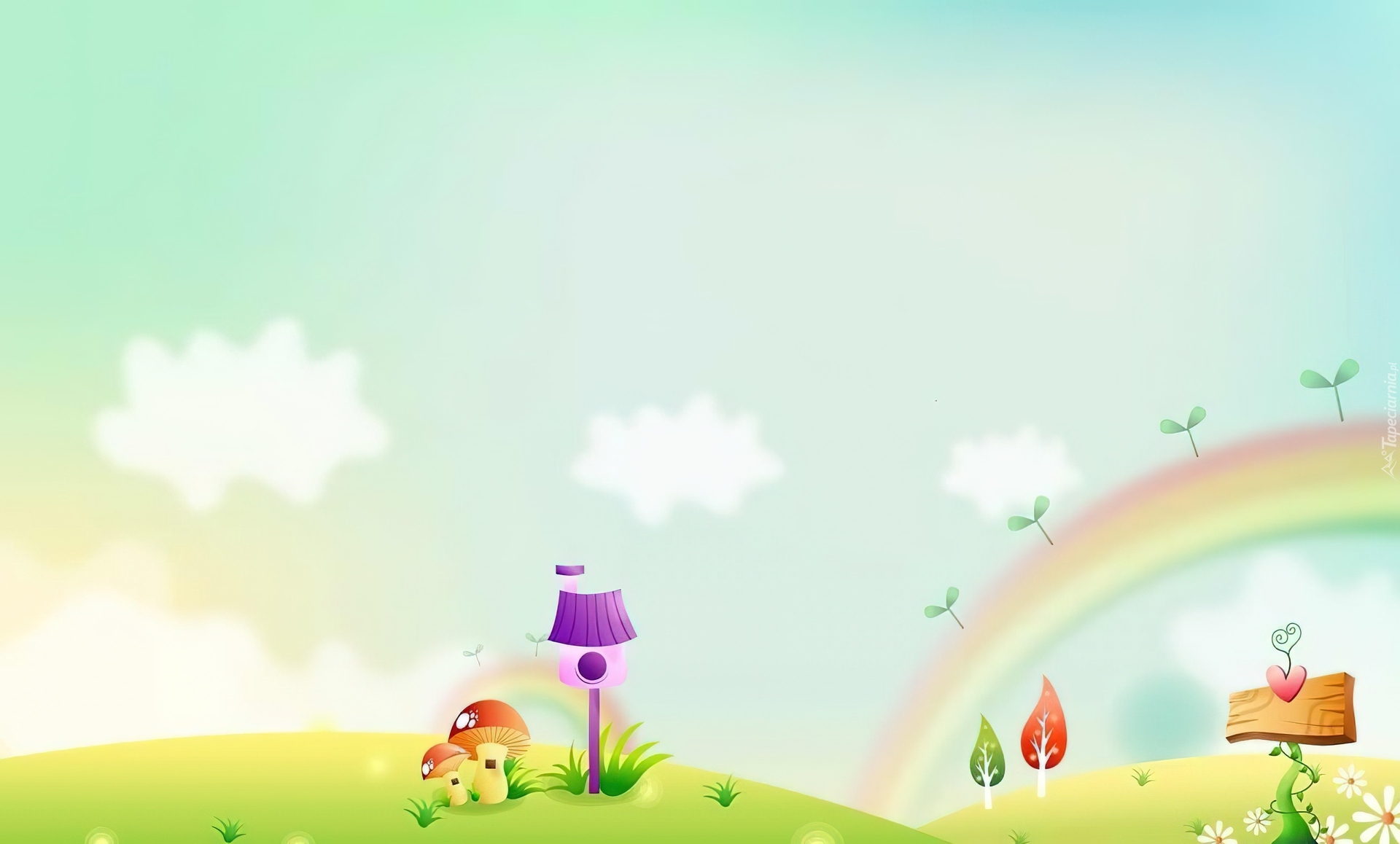 Edytor tapety: Łąka, Grzybki, Mały, Domek, Tęcza