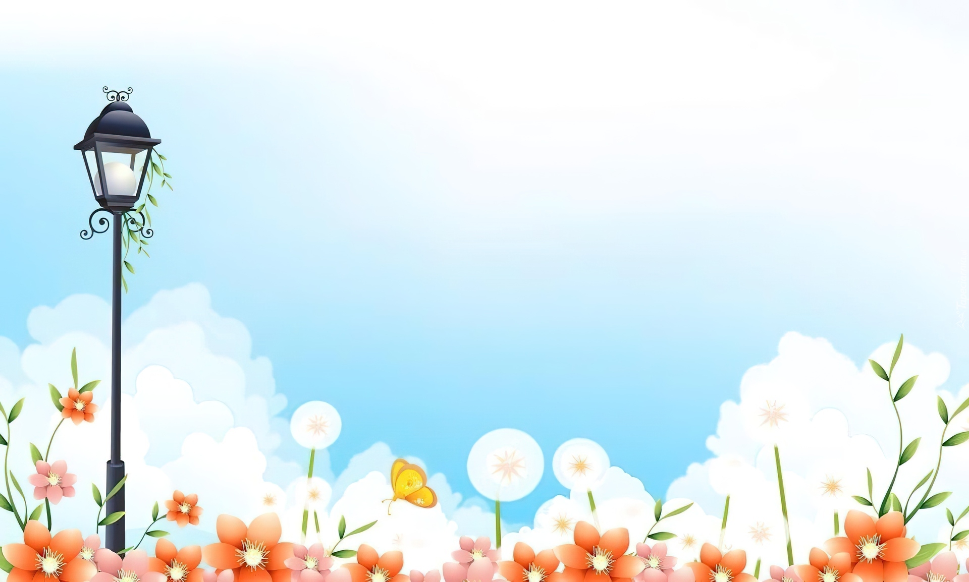 Edytor tapety: Latarnia, Kwiaty, Motyl