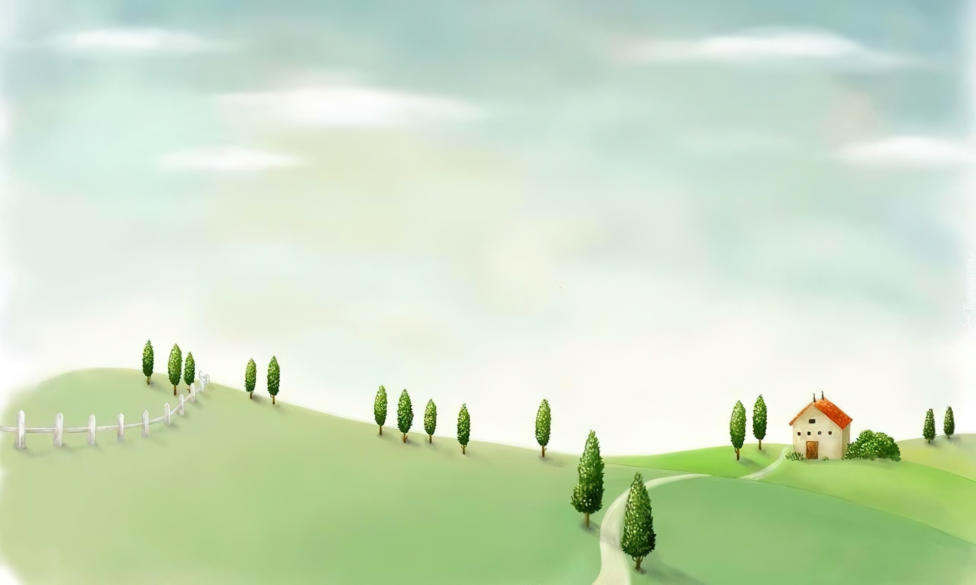 Edytor tapety: Trawa, Drzewa, Dróżka, Płot, Dom
