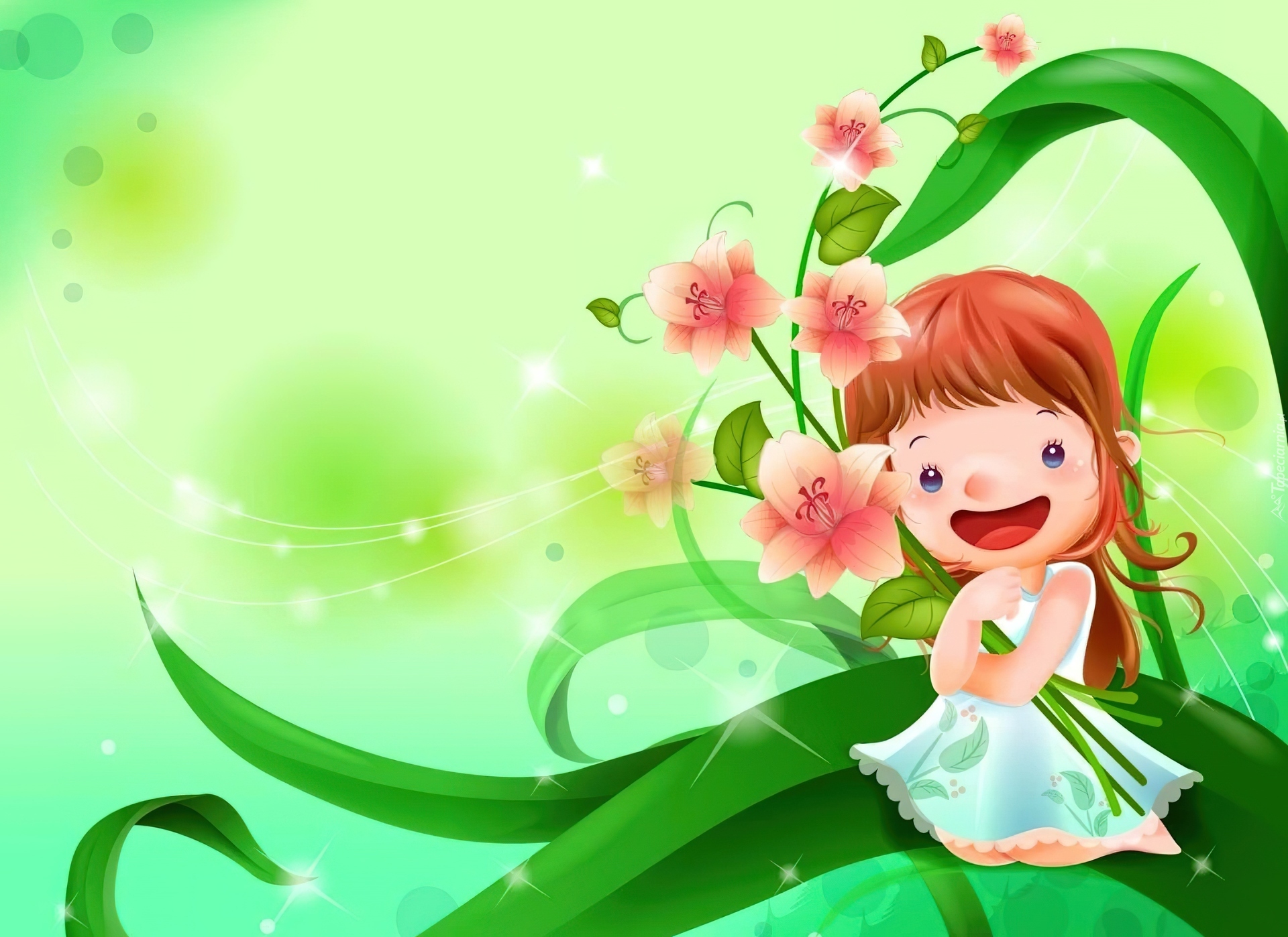 Edytor tapety: Dziewczynka, Różowe, Kwiaty, Liście