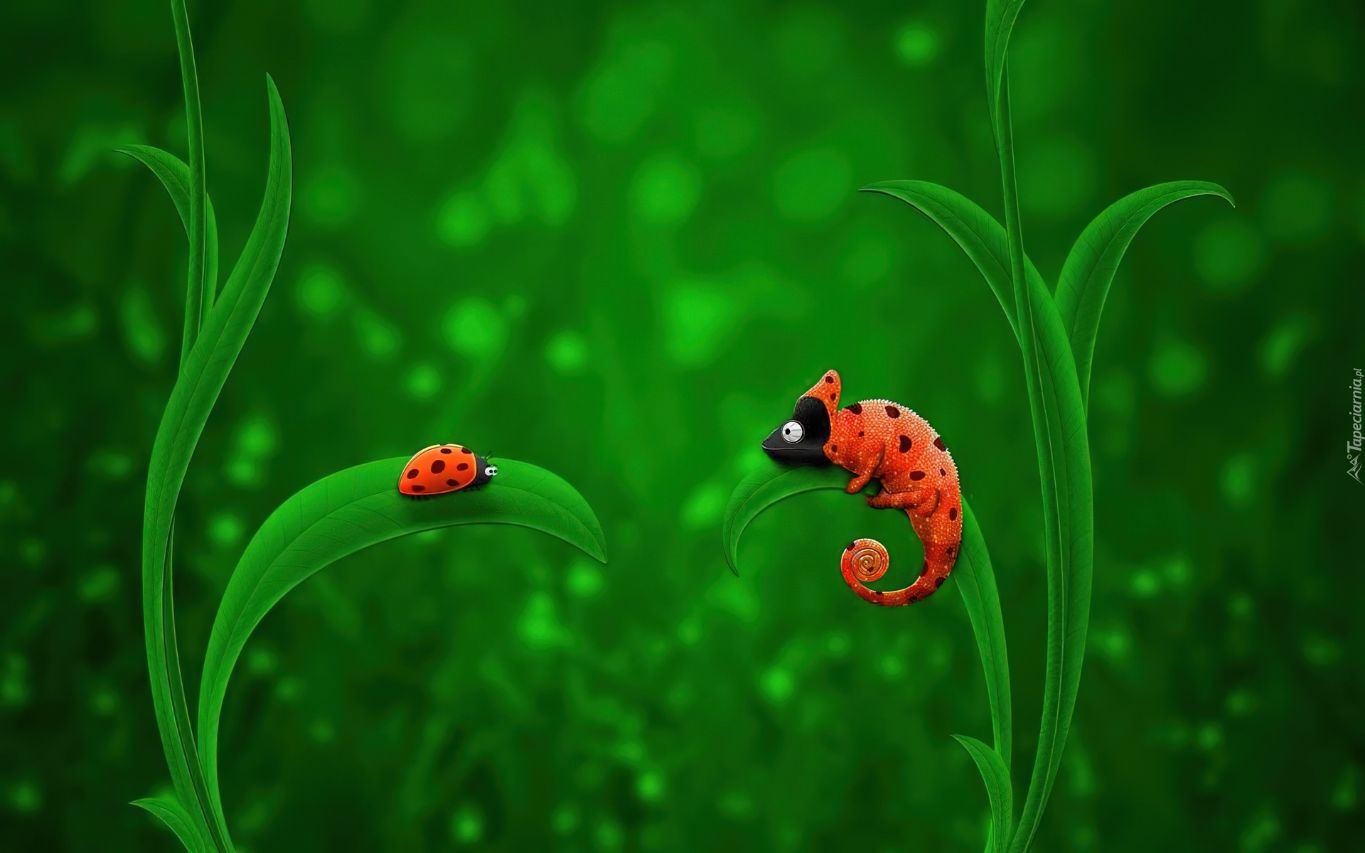 Edytor tapety: Trawa, Kameleon, Biedronka