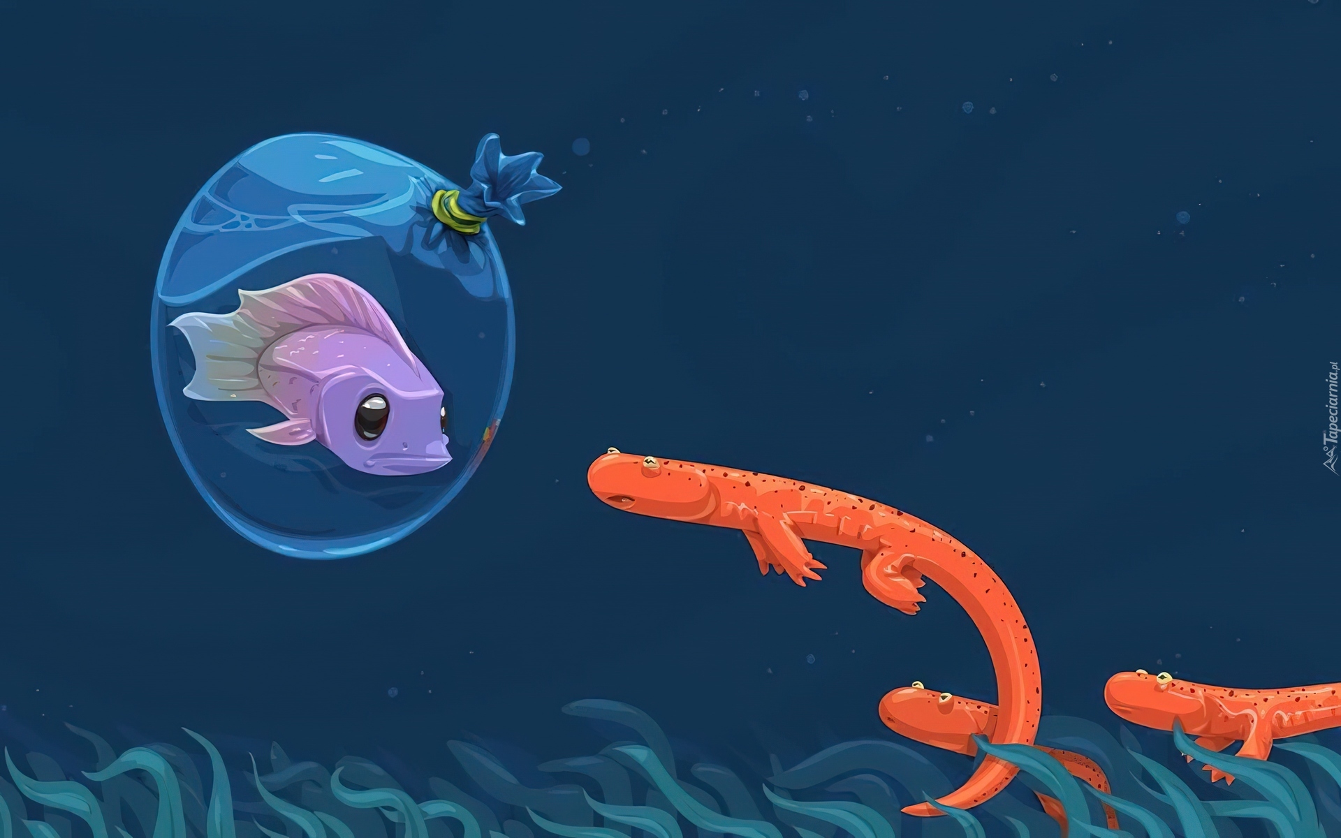 Edytor tapety: Morze, Ryby, Bańka, Grafika 3D