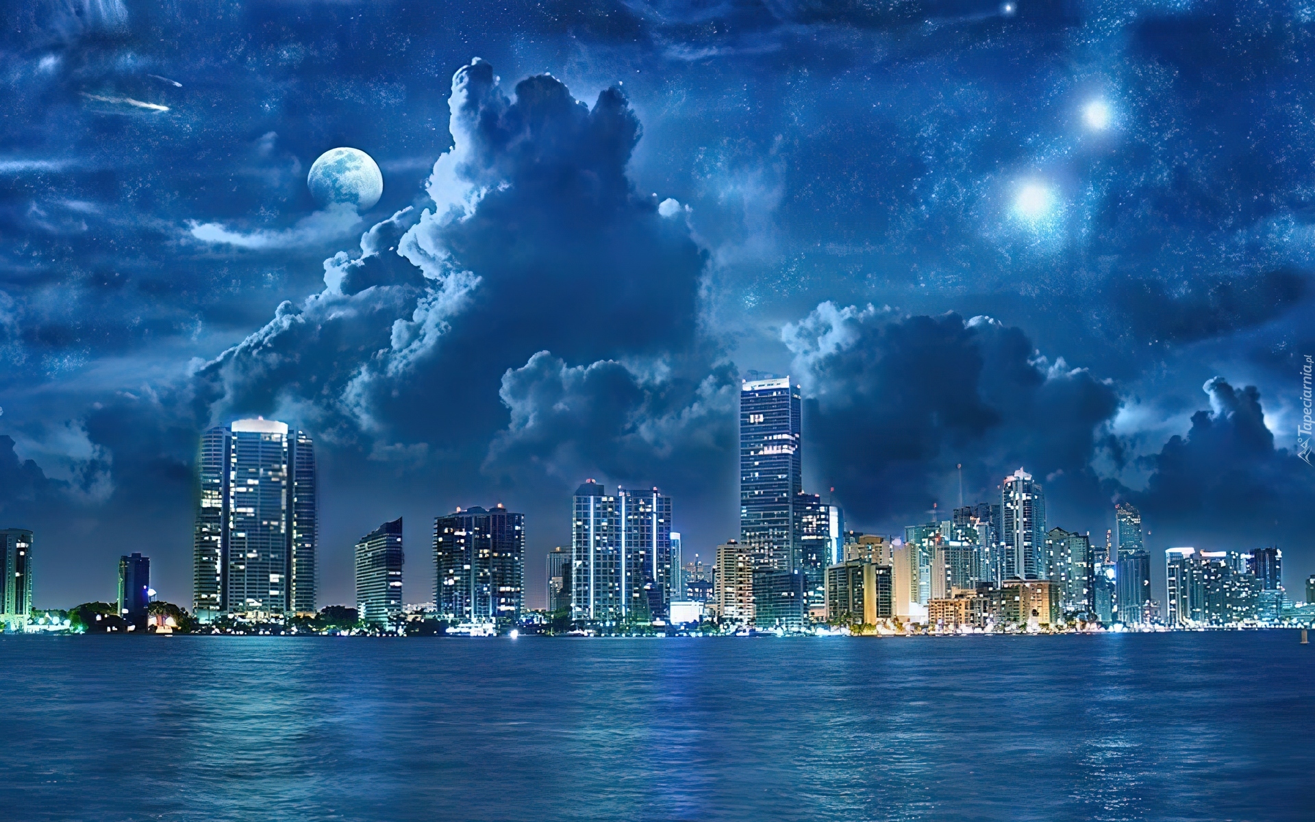Edytor tapety: Rzeka, Miasto, Noc
