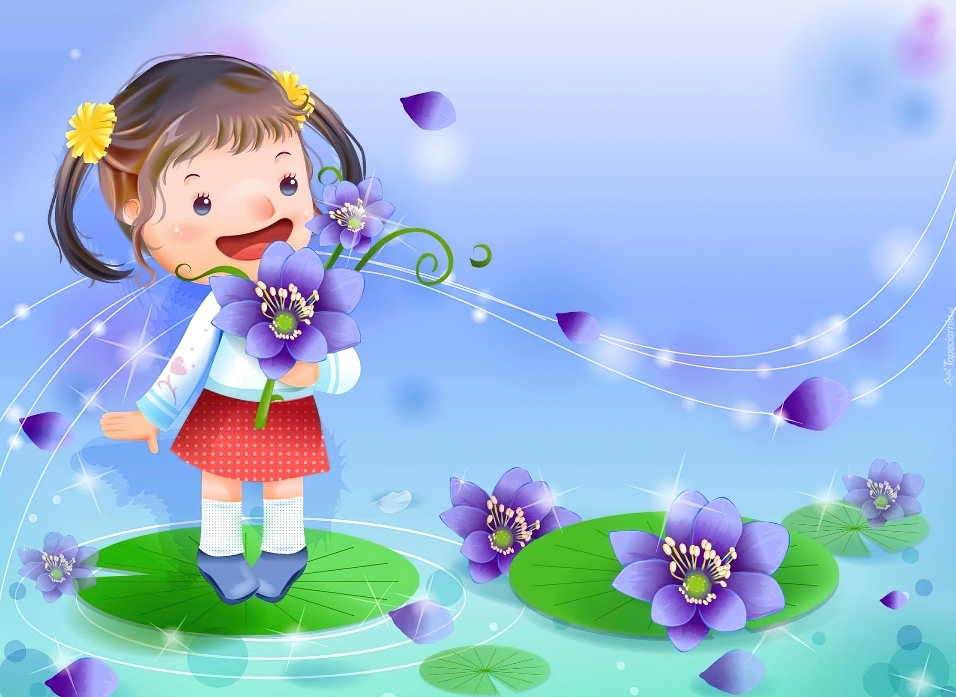 Edytor tapety: Dziewczynka, Kwiaty, Lilie