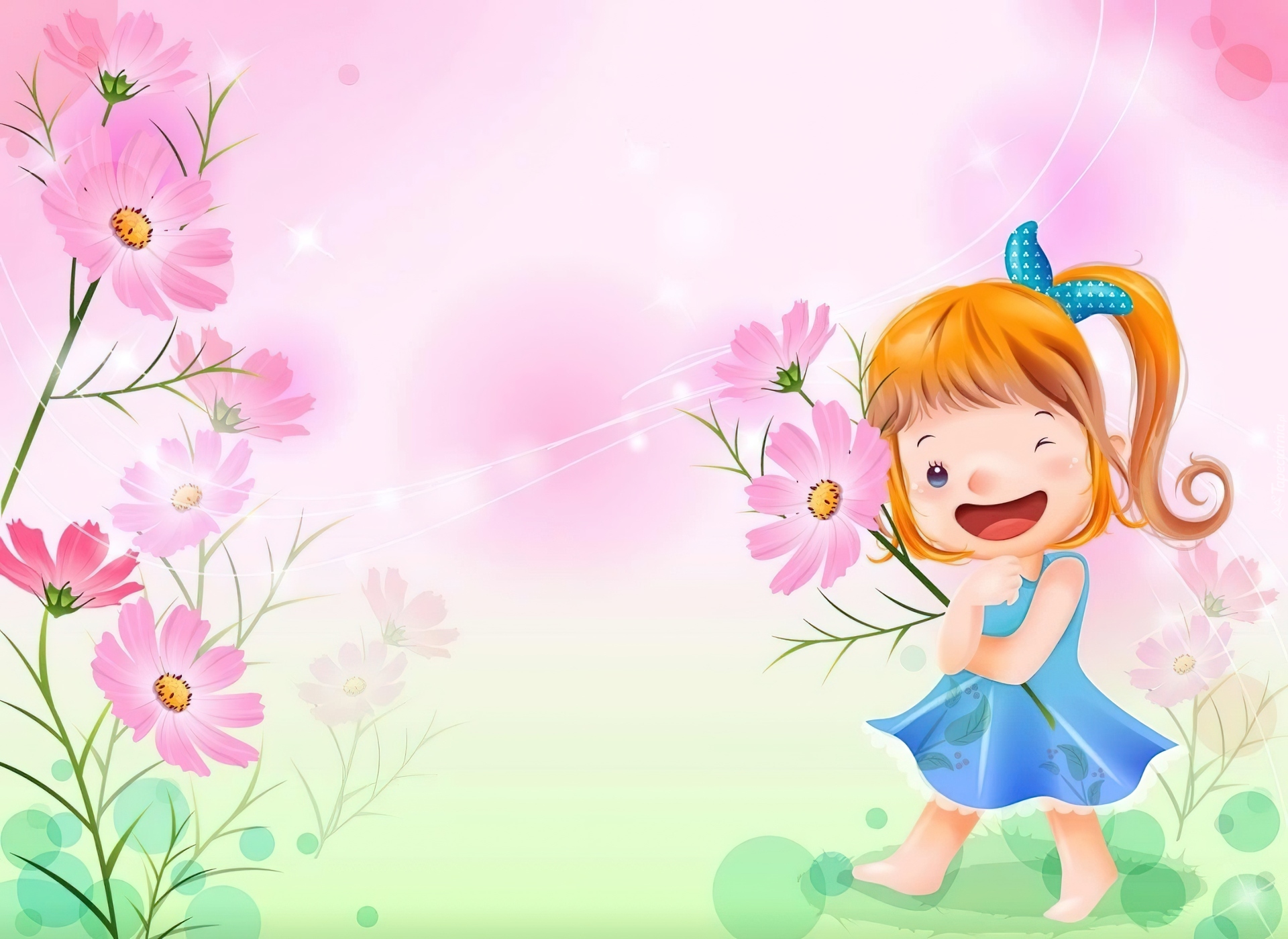 Edytor tapety: Różowe, Kwiaty, Dziewczynka