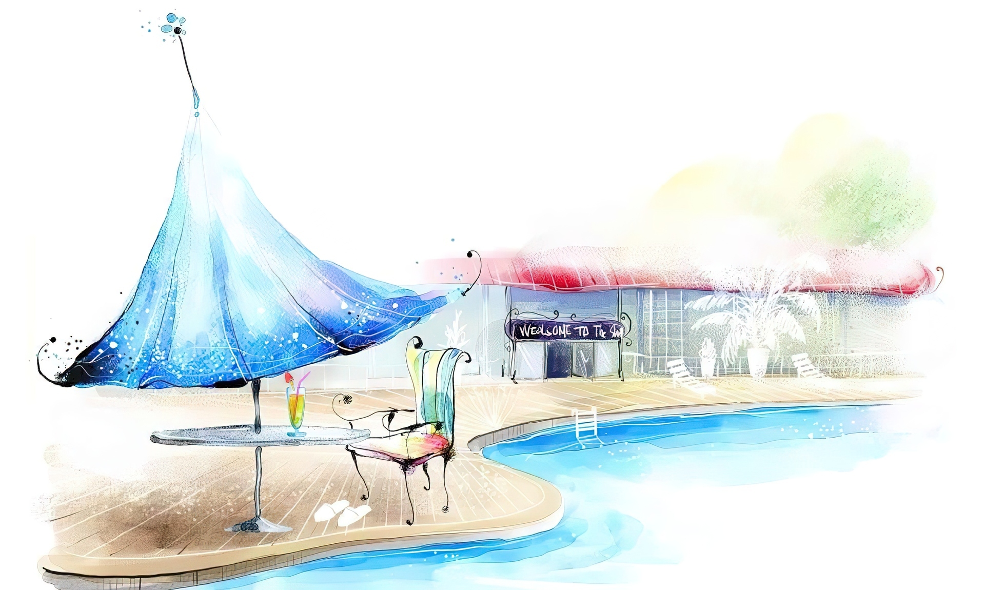 Edytor tapety: Basen, Stolik, Parasol Rysunek