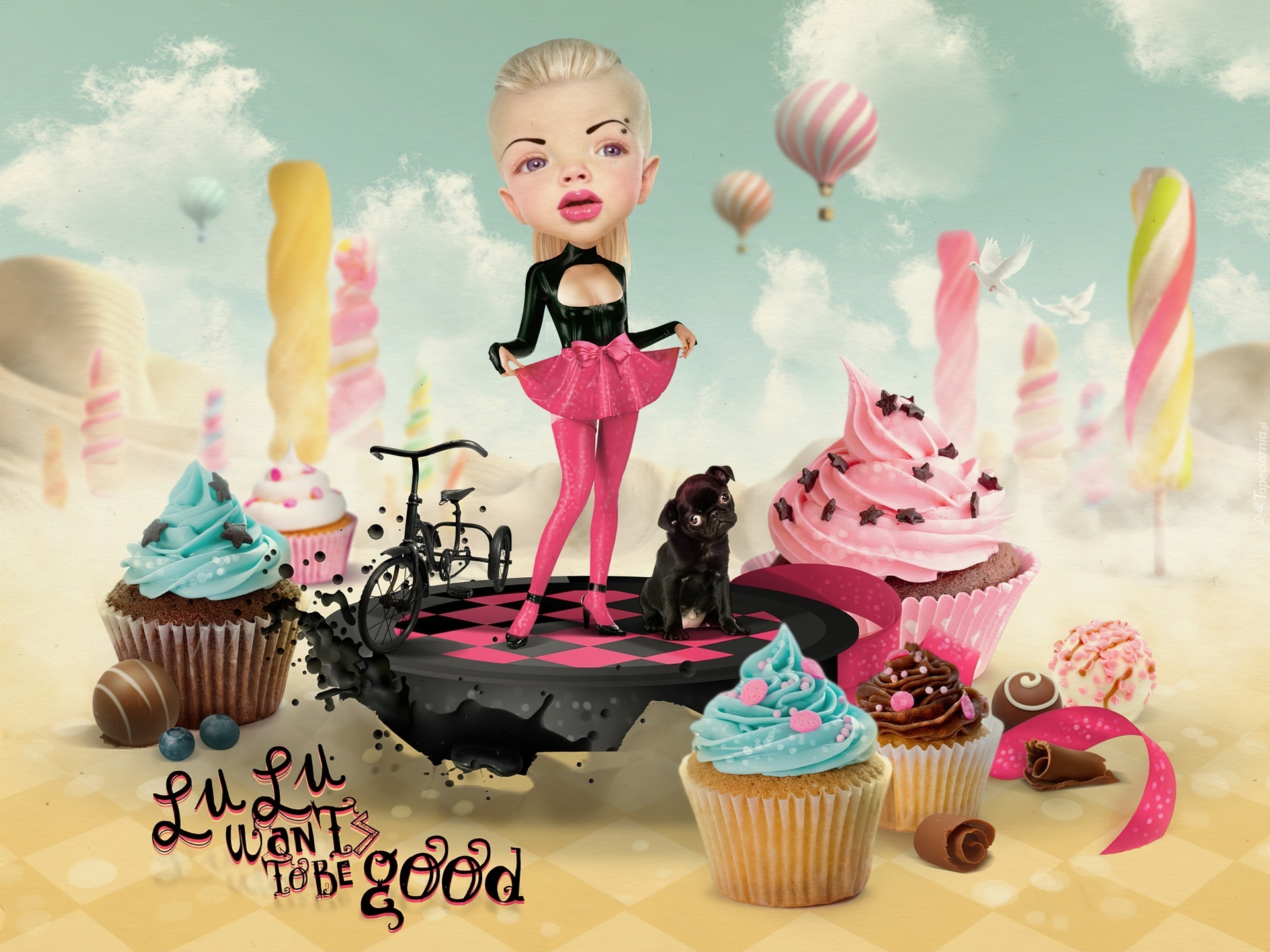 Edytor tapety: Dziewczynka, Babeczki, Pies
