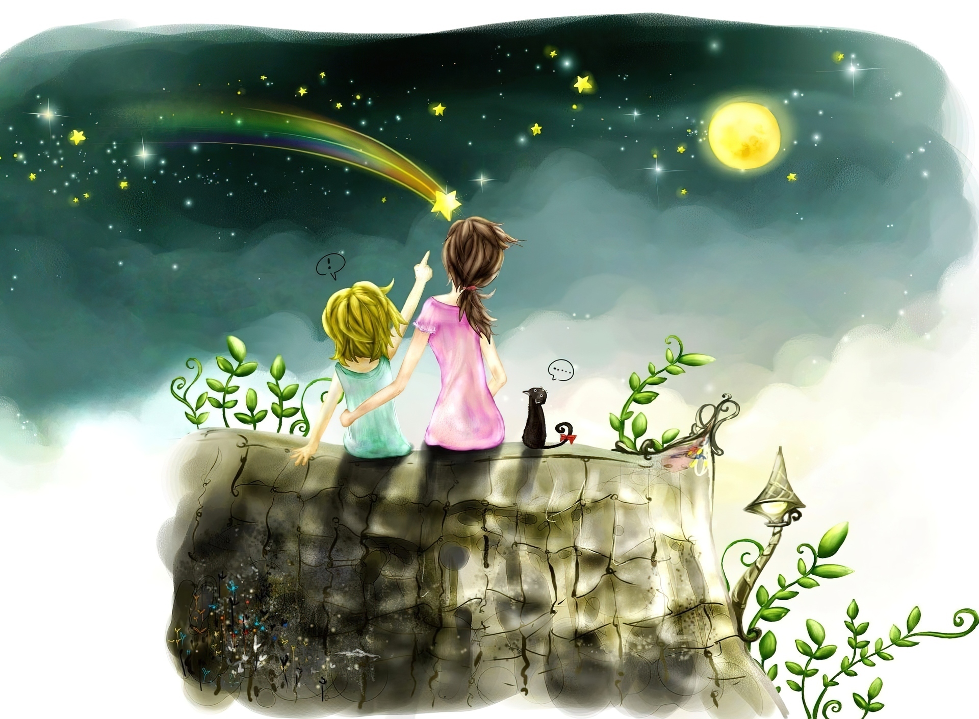 Edytor tapety: Noc, Gwiazdy, Murek, Dzieci