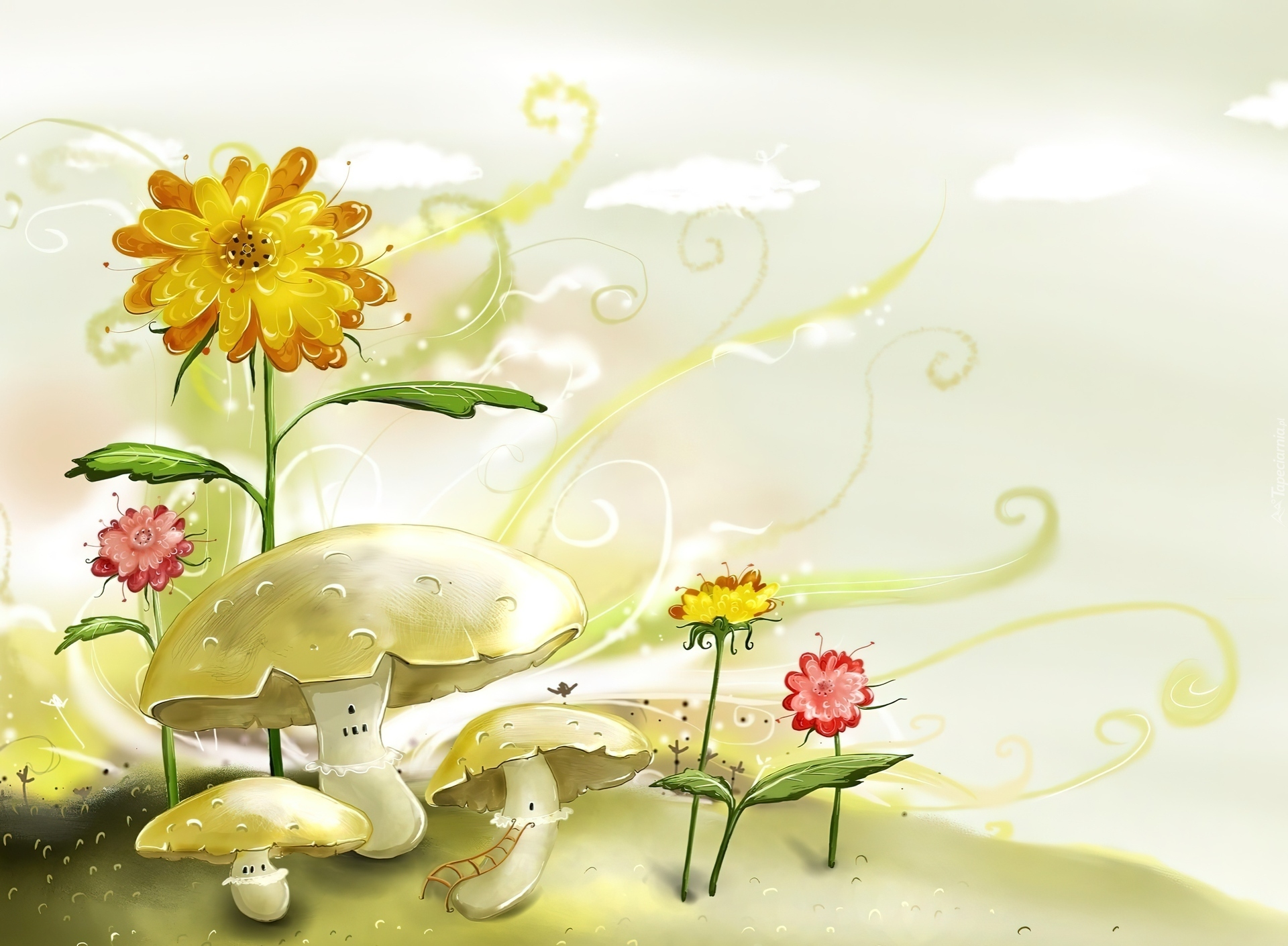 Edytor tapety: Trzy, Grzyby, Kwiaty