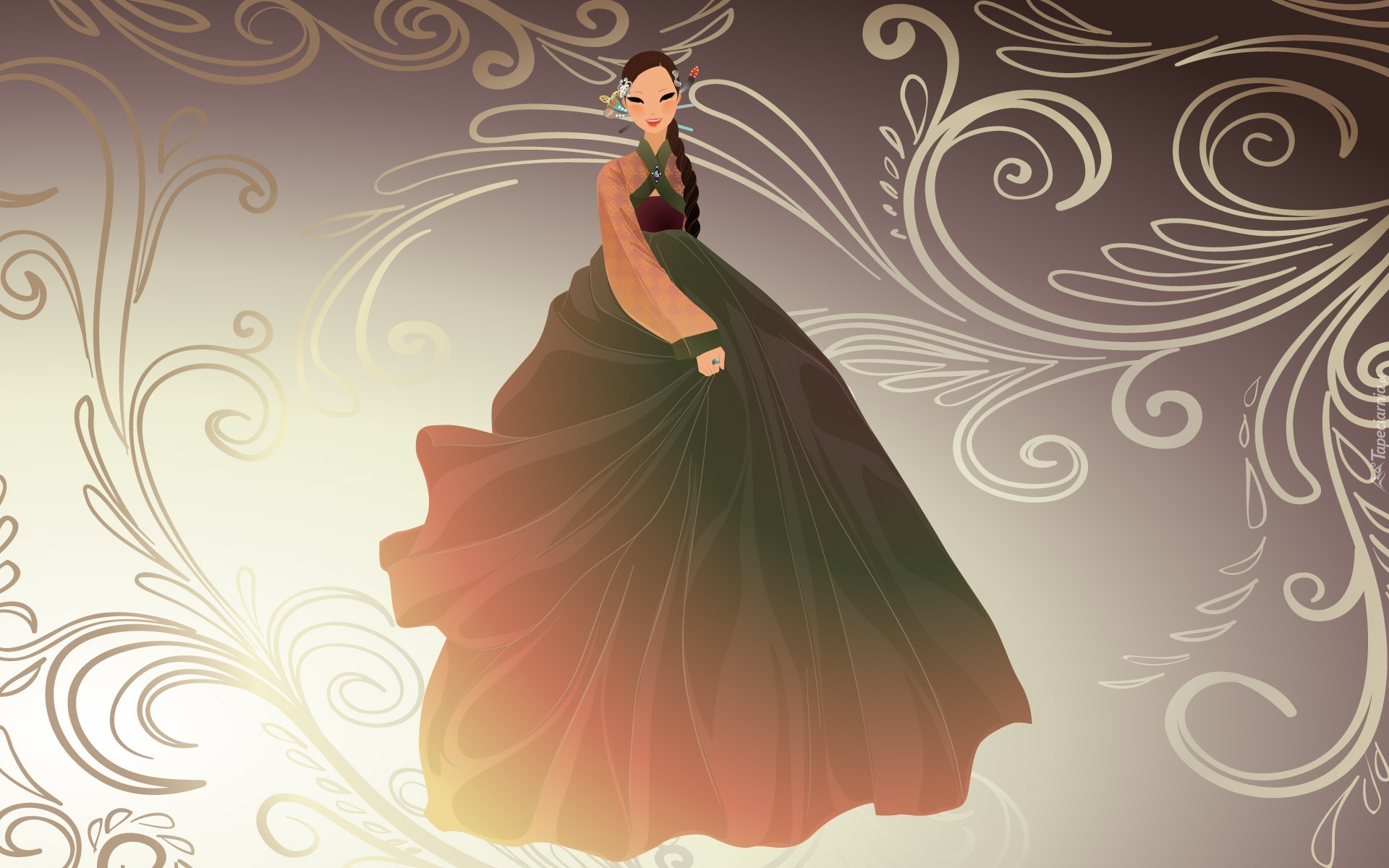 Edytor tapety: Azjatka, Długa, Suknia