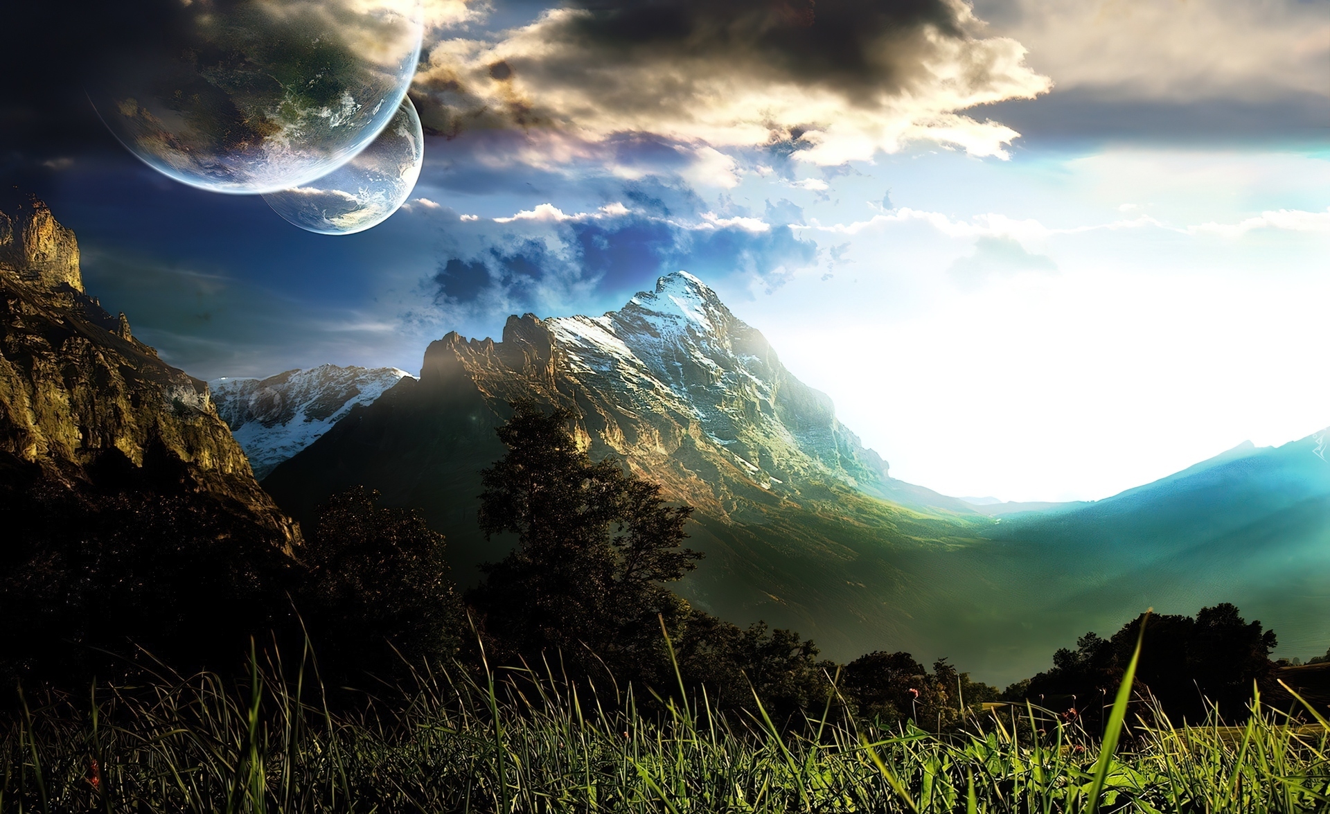 Edytor tapety: Planety, Góry, Chmury