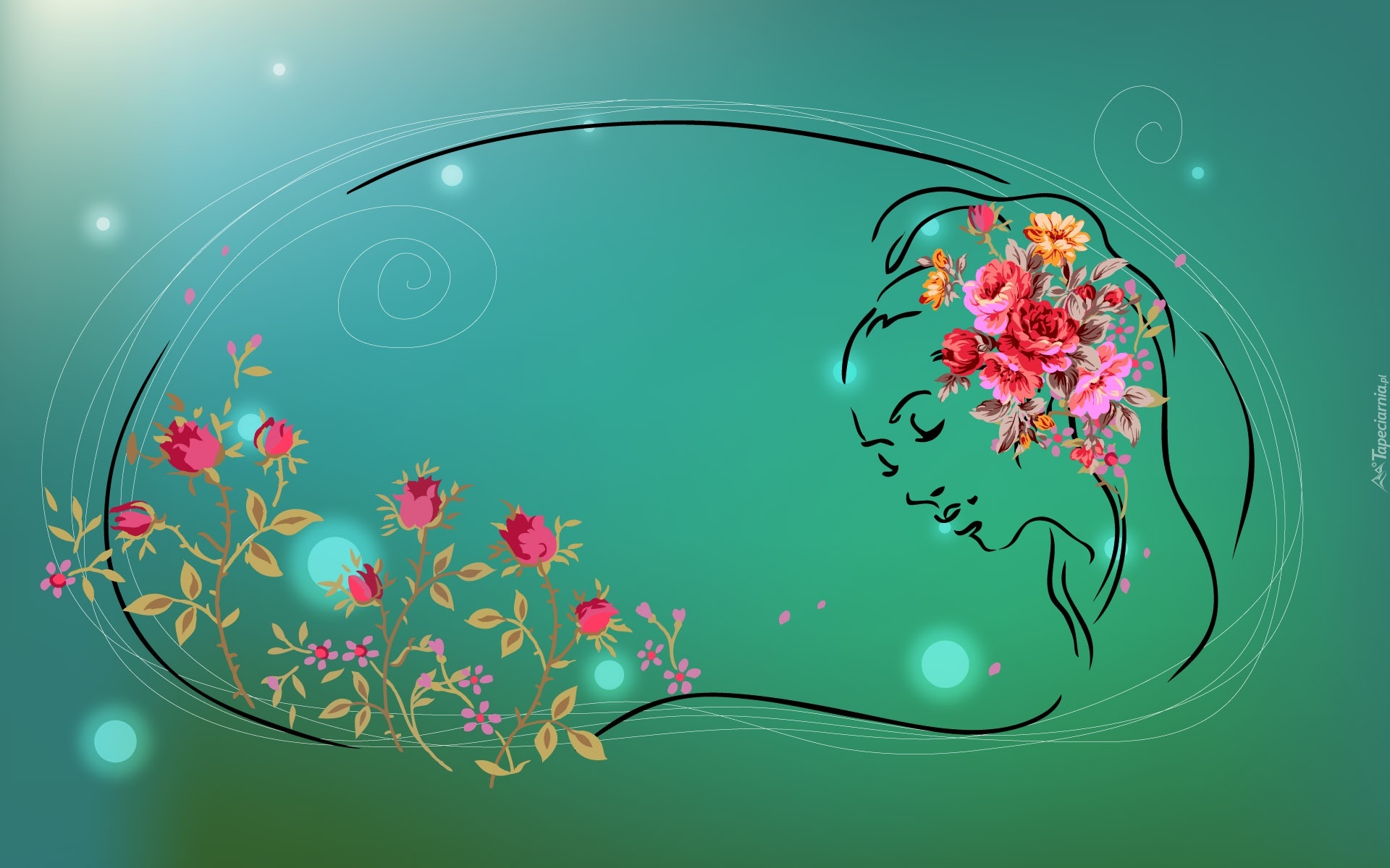 Edytor tapety: Kobieta, Głowa, Kwiaty