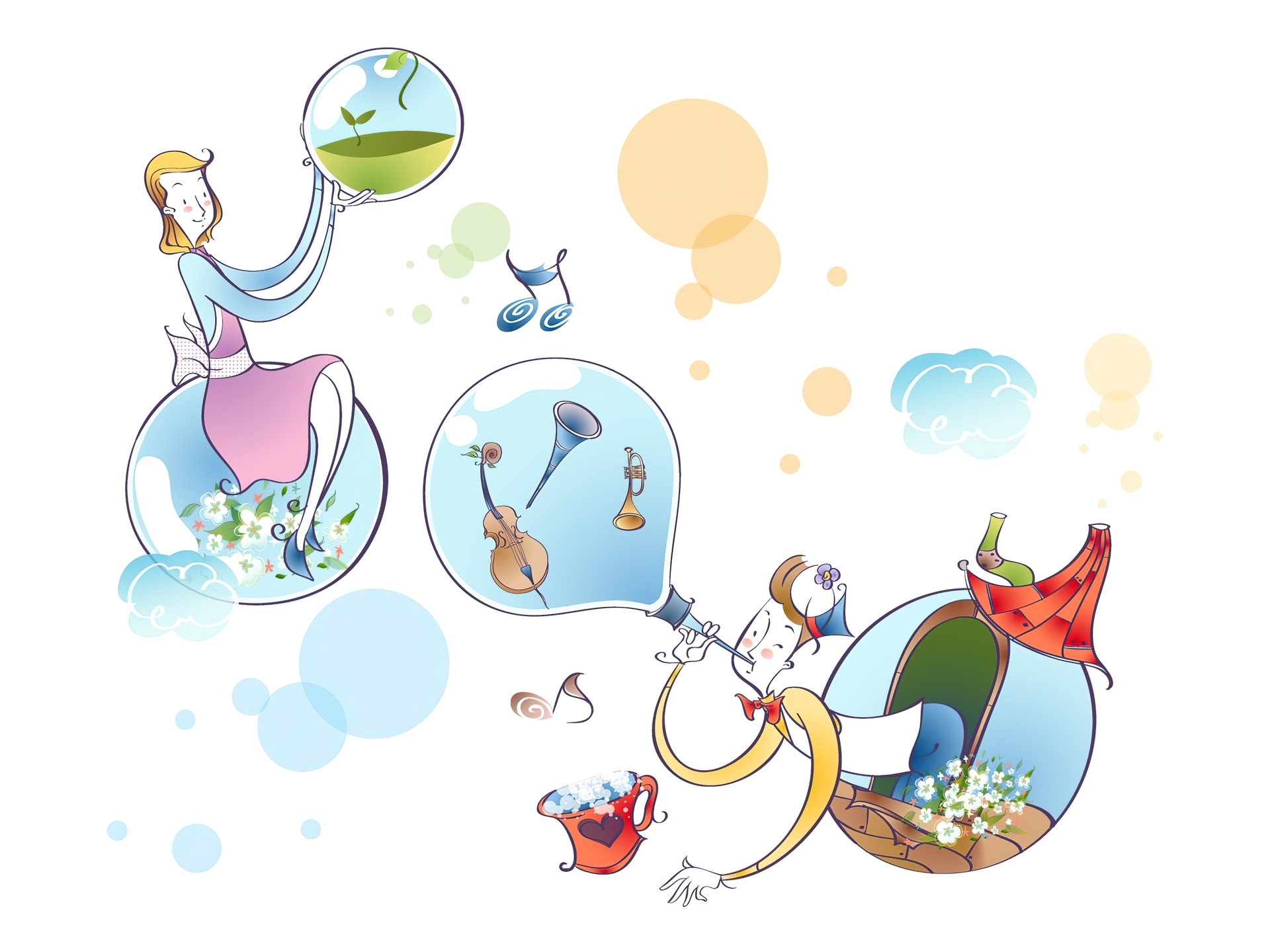 Edytor tapety: Instrumenty, Kobieta, Mężczyzna, Bańki