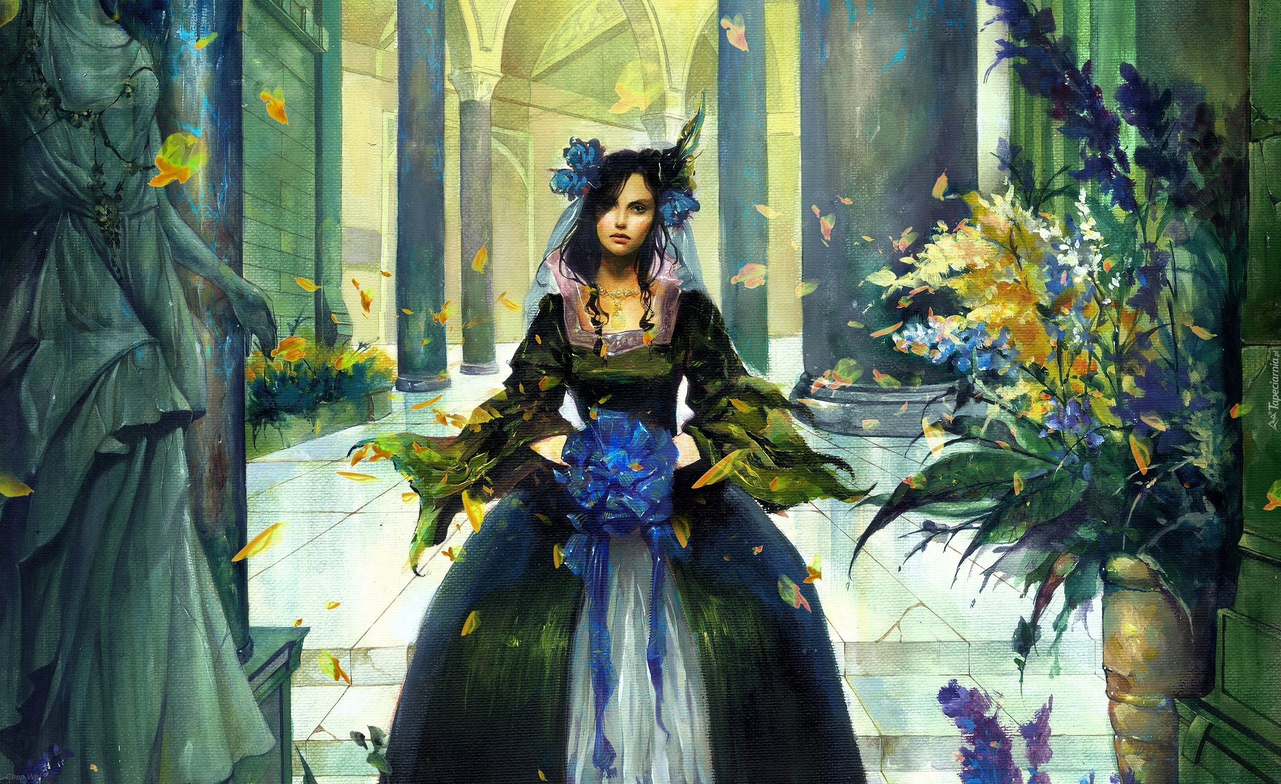 Edytor tapety: Kobieta, Suknia, Kwiaty
