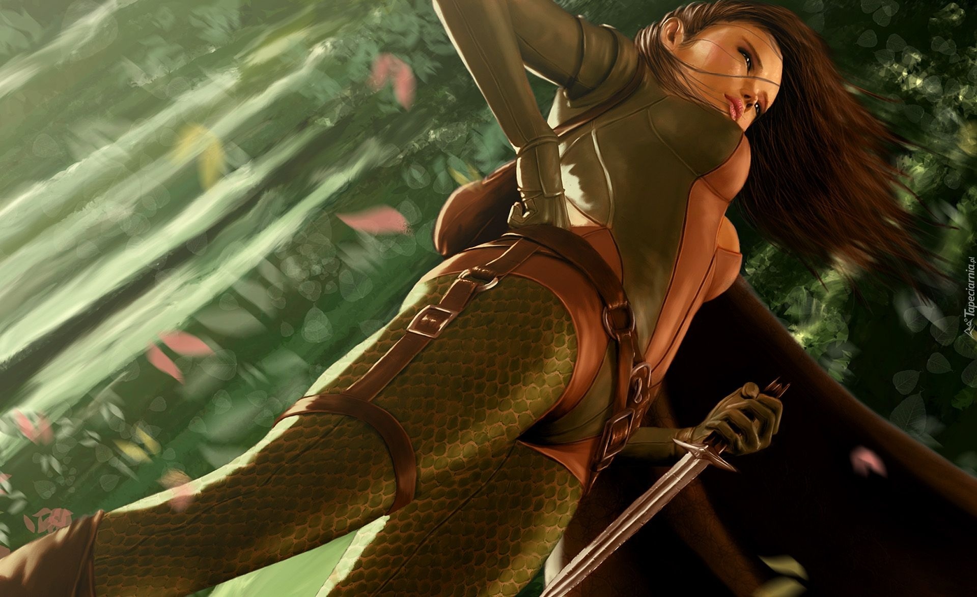 Edytor tapety: Kobieta, Łowczyni, Miecz
