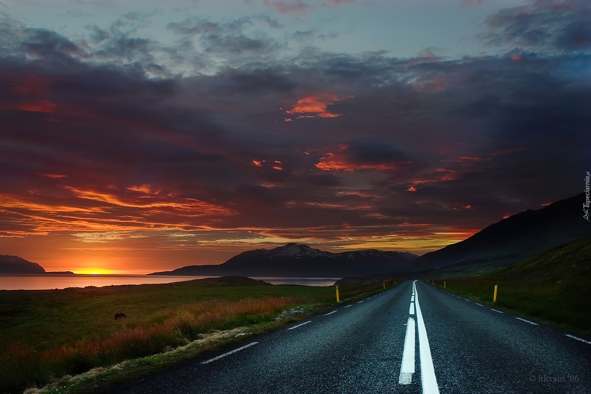 Edytor tapety: Droga, Niebo, Zachód, Słońca