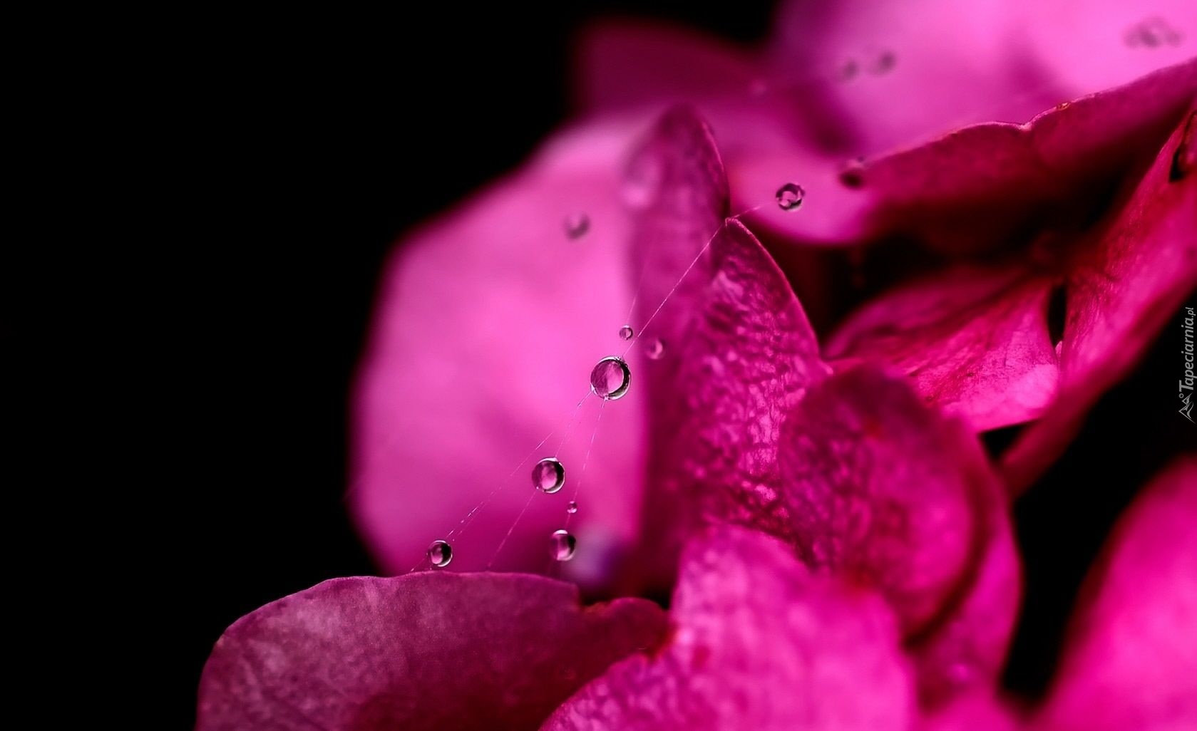 Edytor tapety: Różowe, Kwiaty, Pajęczyna, Krople, Wody