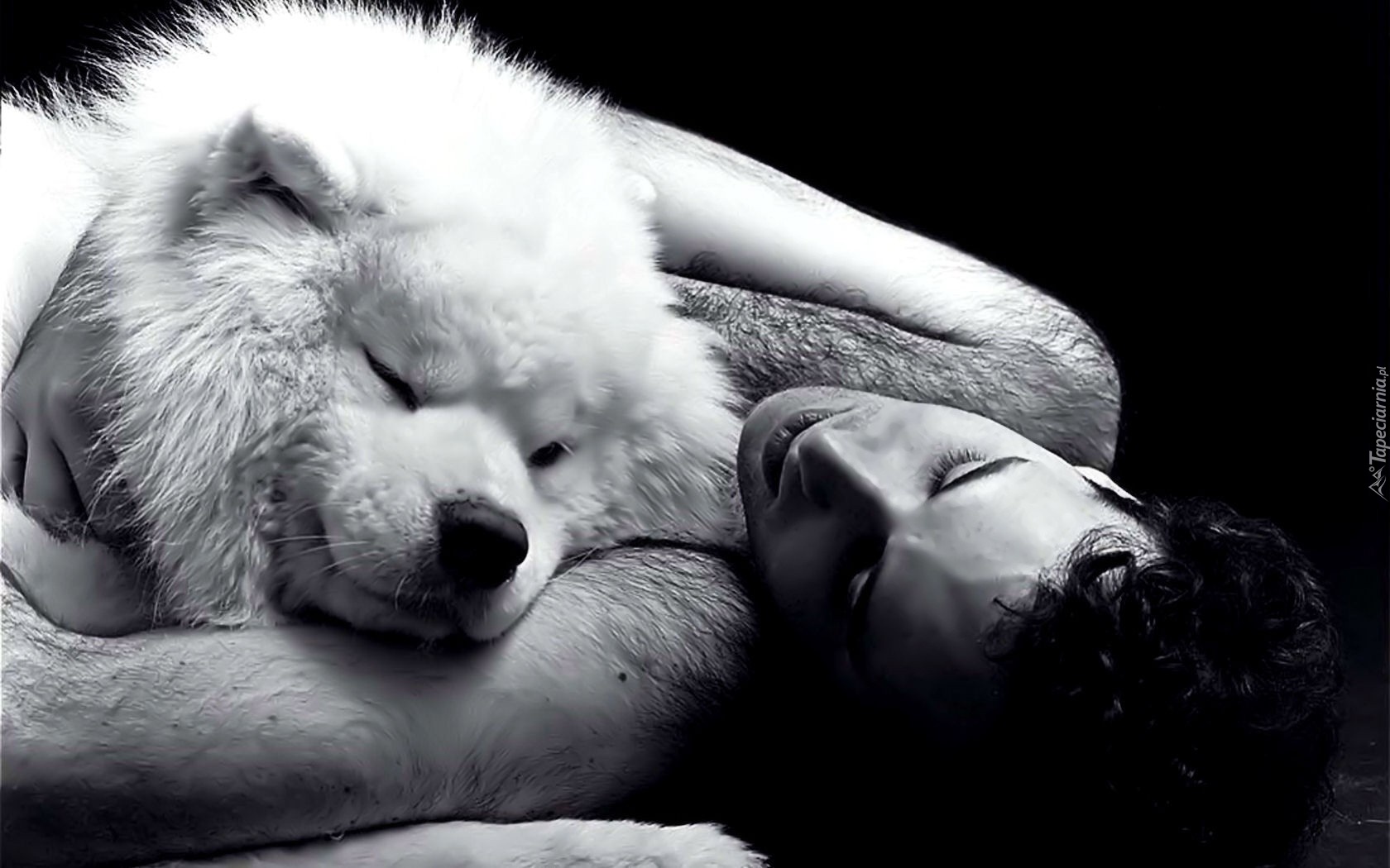 Edytor tapety: Śpiący, Mężczyzna, Pies