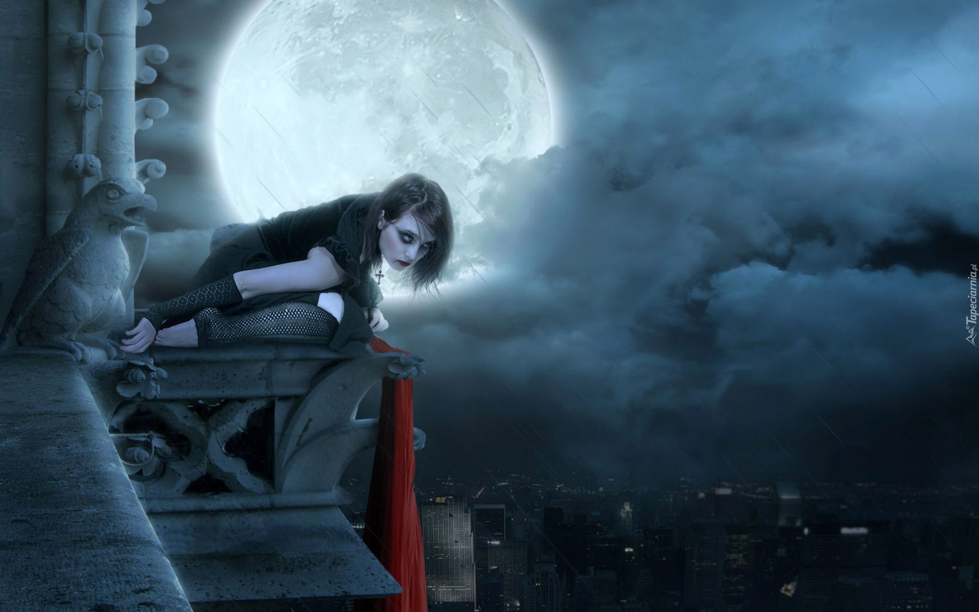 Edytor tapety: Kobieta, Balkon, Księżyc