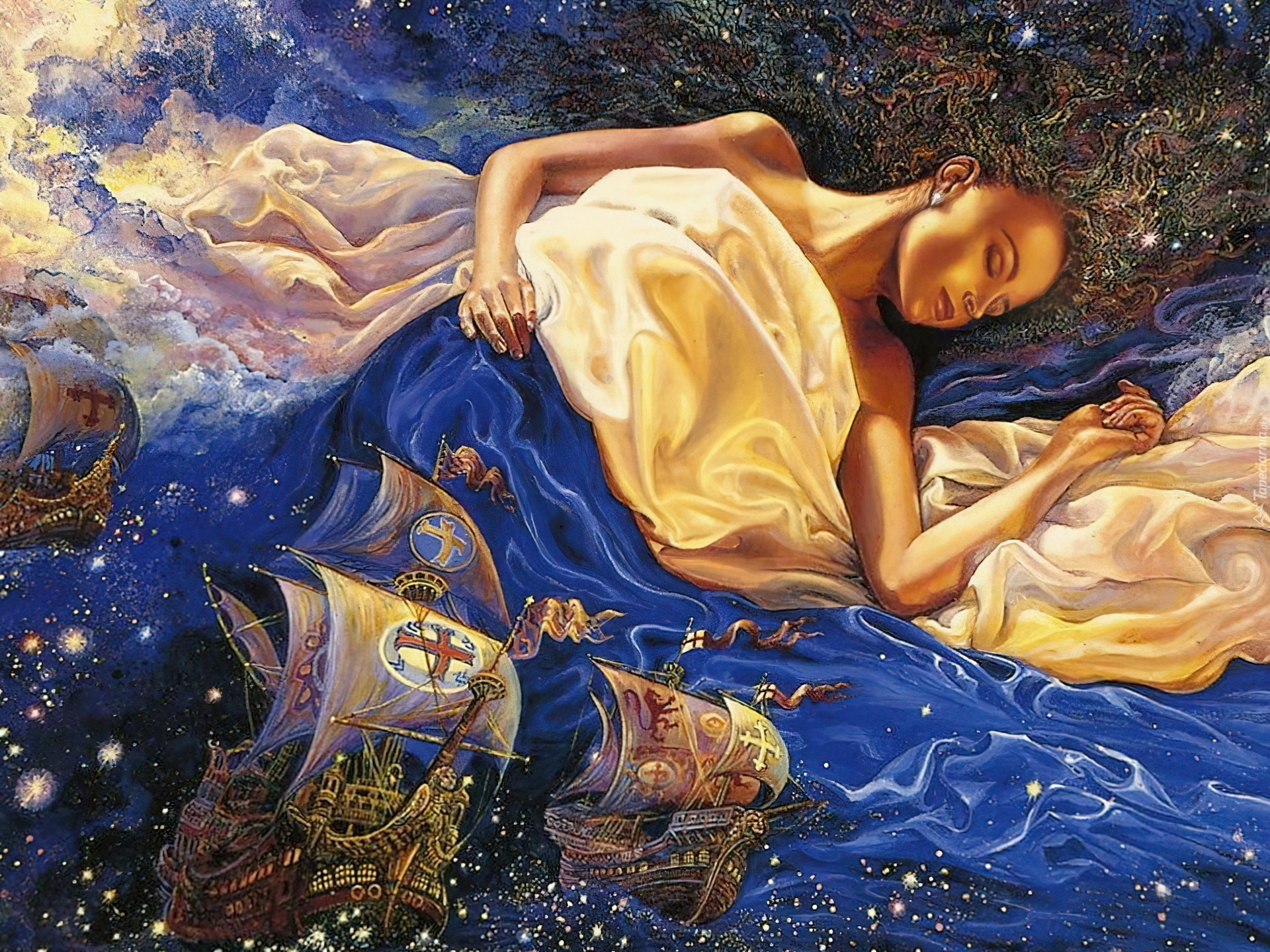 Edytor tapety: Śpiąca, Kobieta, Woda, Żagle