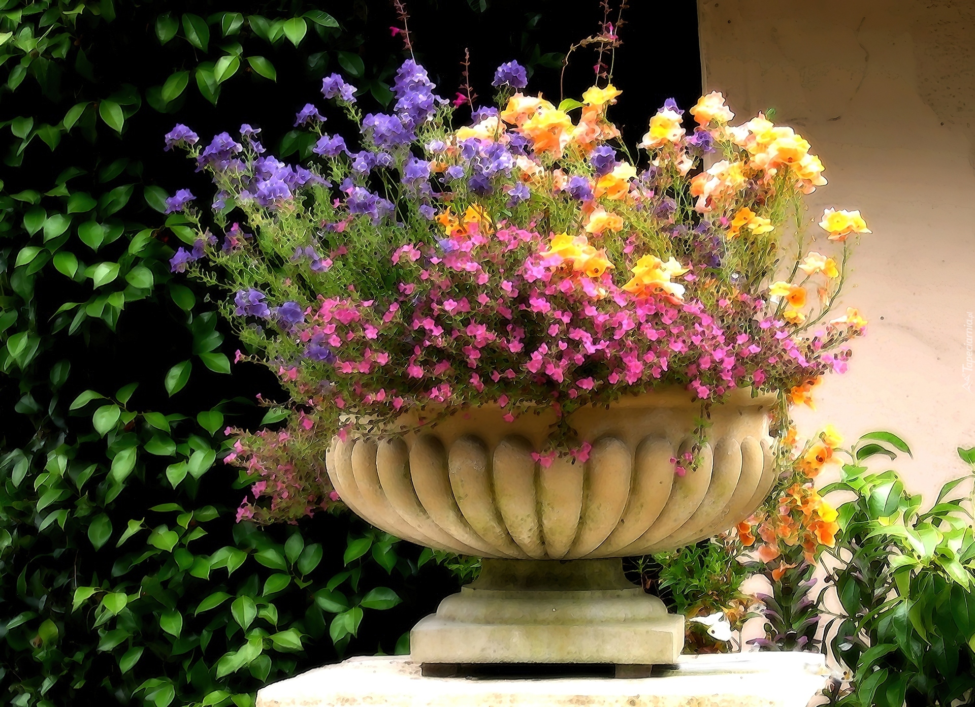 Edytor tapety: Doniczka, Kolorowe, Kwiaty