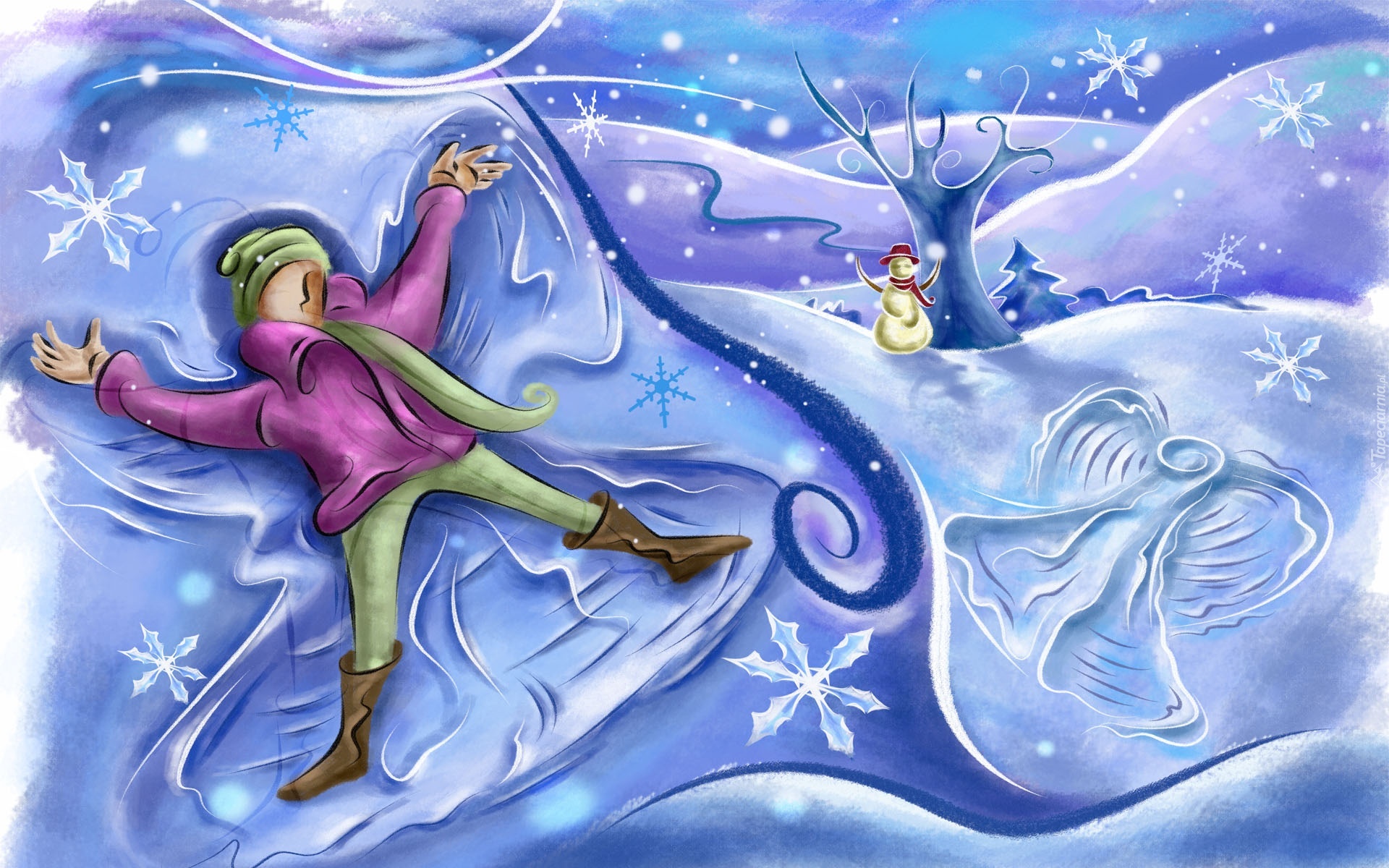 Edytor tapety: Zima, Śnieg, Dziecko, Zabawa, Grafika 2D, Bałwanek