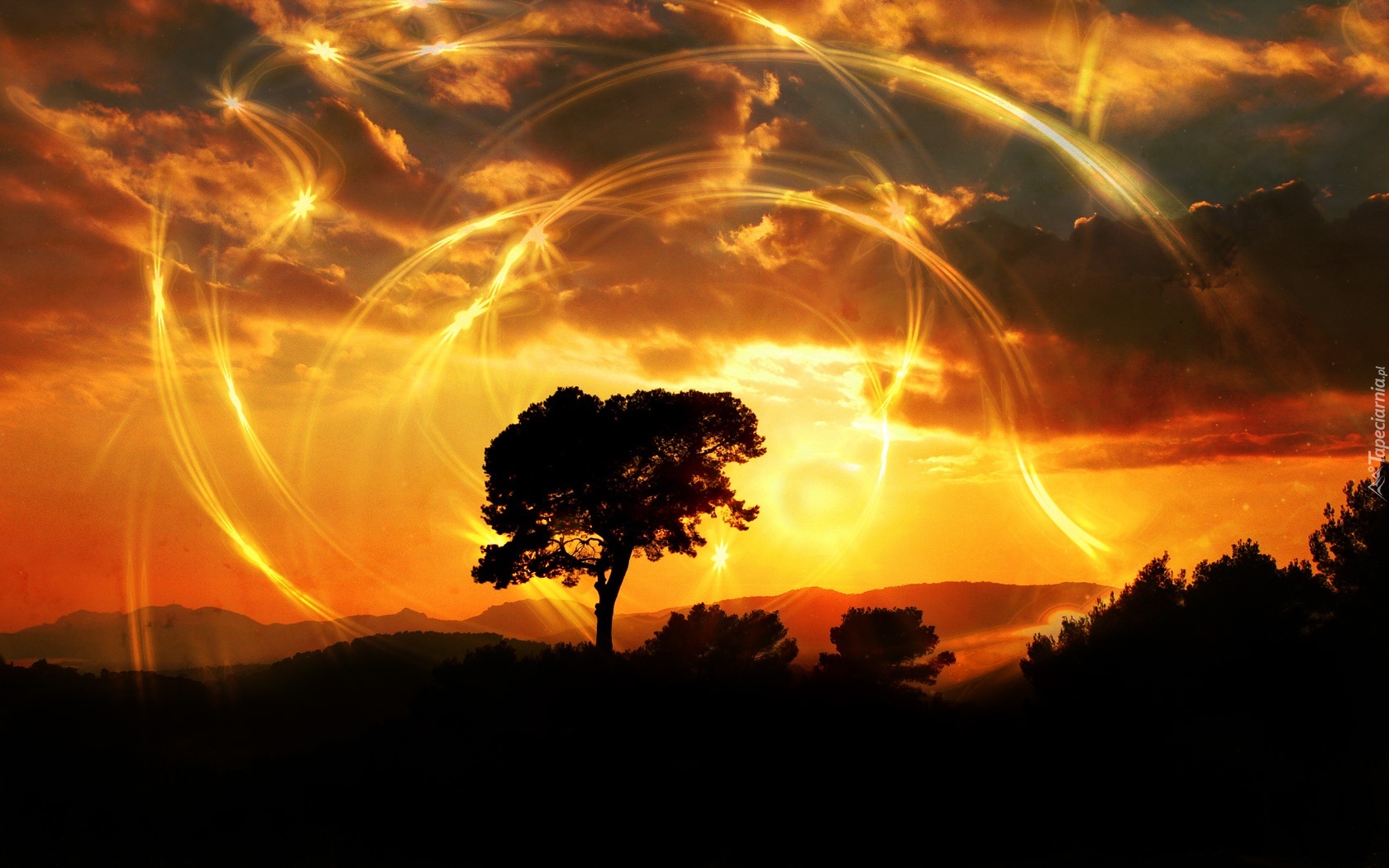 Edytor tapety: Drzewo, Niebo, Chmury, Zachód, Słońca