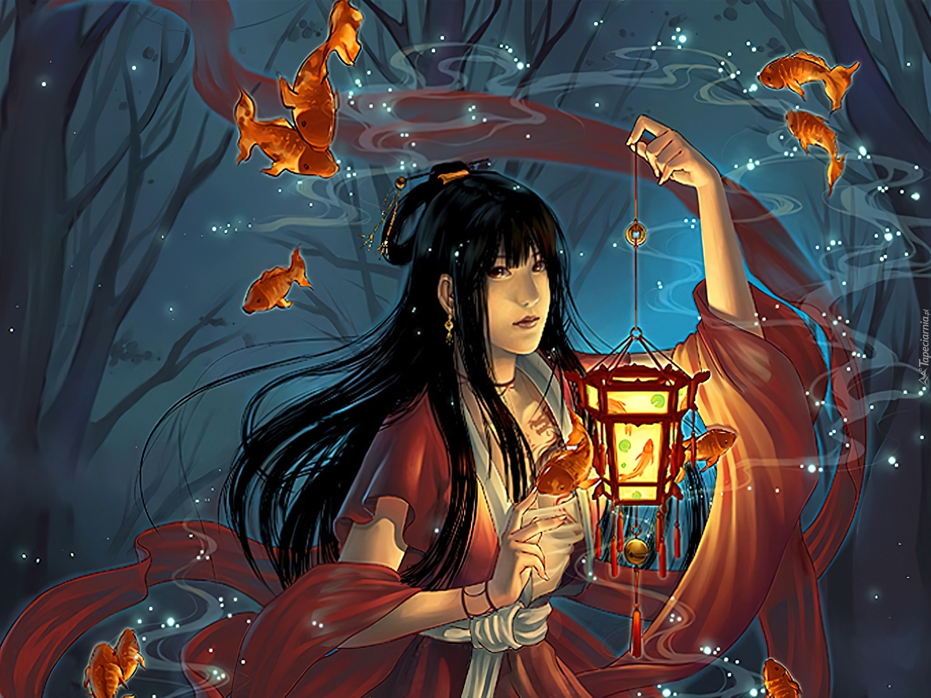 Edytor tapety: Dziewczyna, Lampion, Rybki