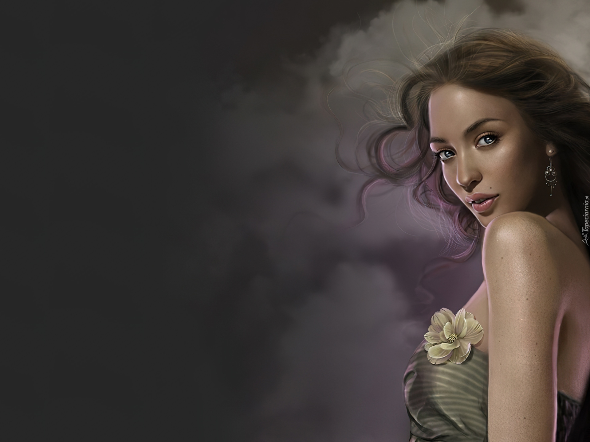 Edytor tapety: Kobieta, Kolczyk, Spojrzenie, Chmury