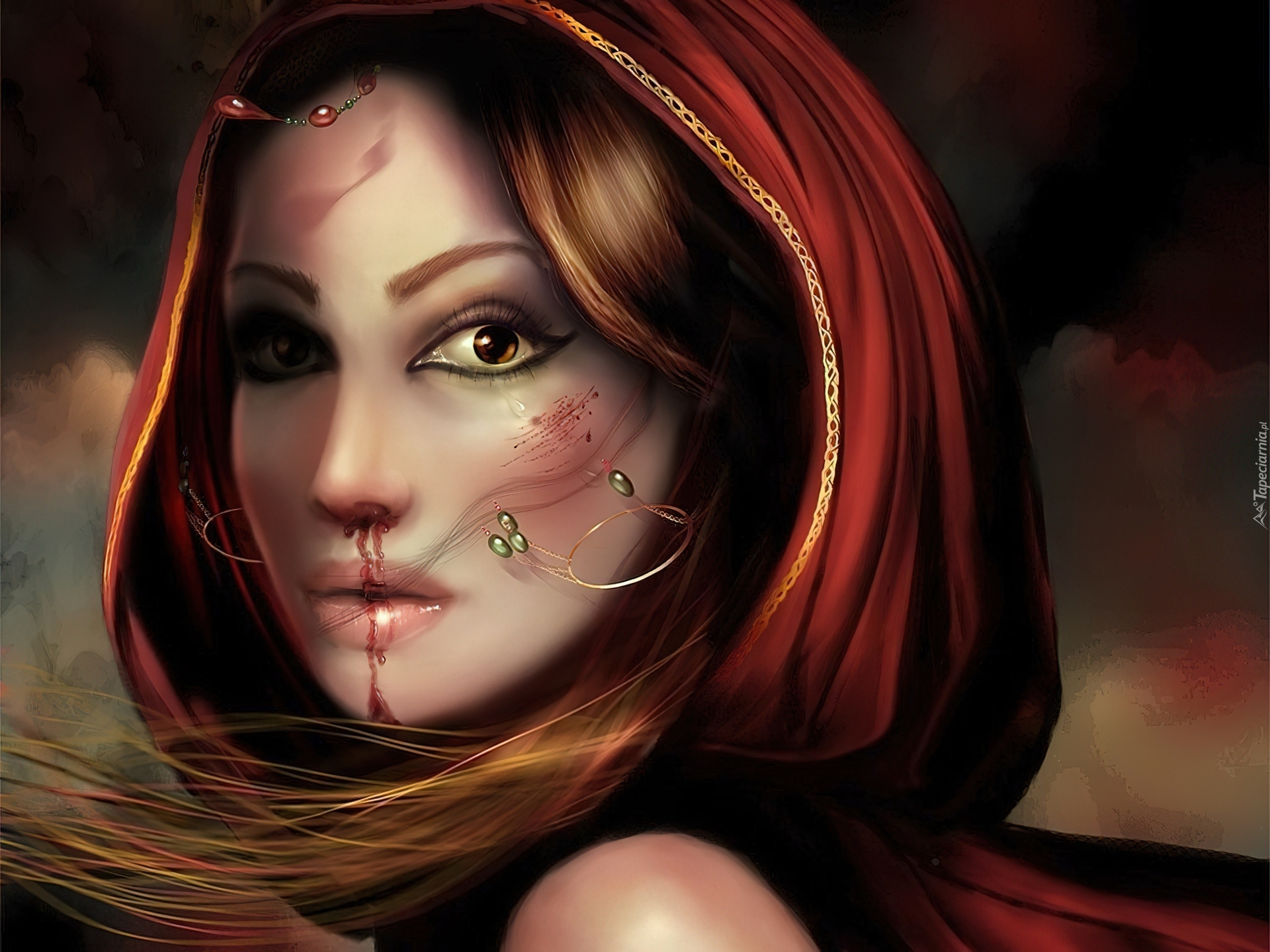 Edytor tapety: Przerażona, Okaleczona, Kobieta, Chusta