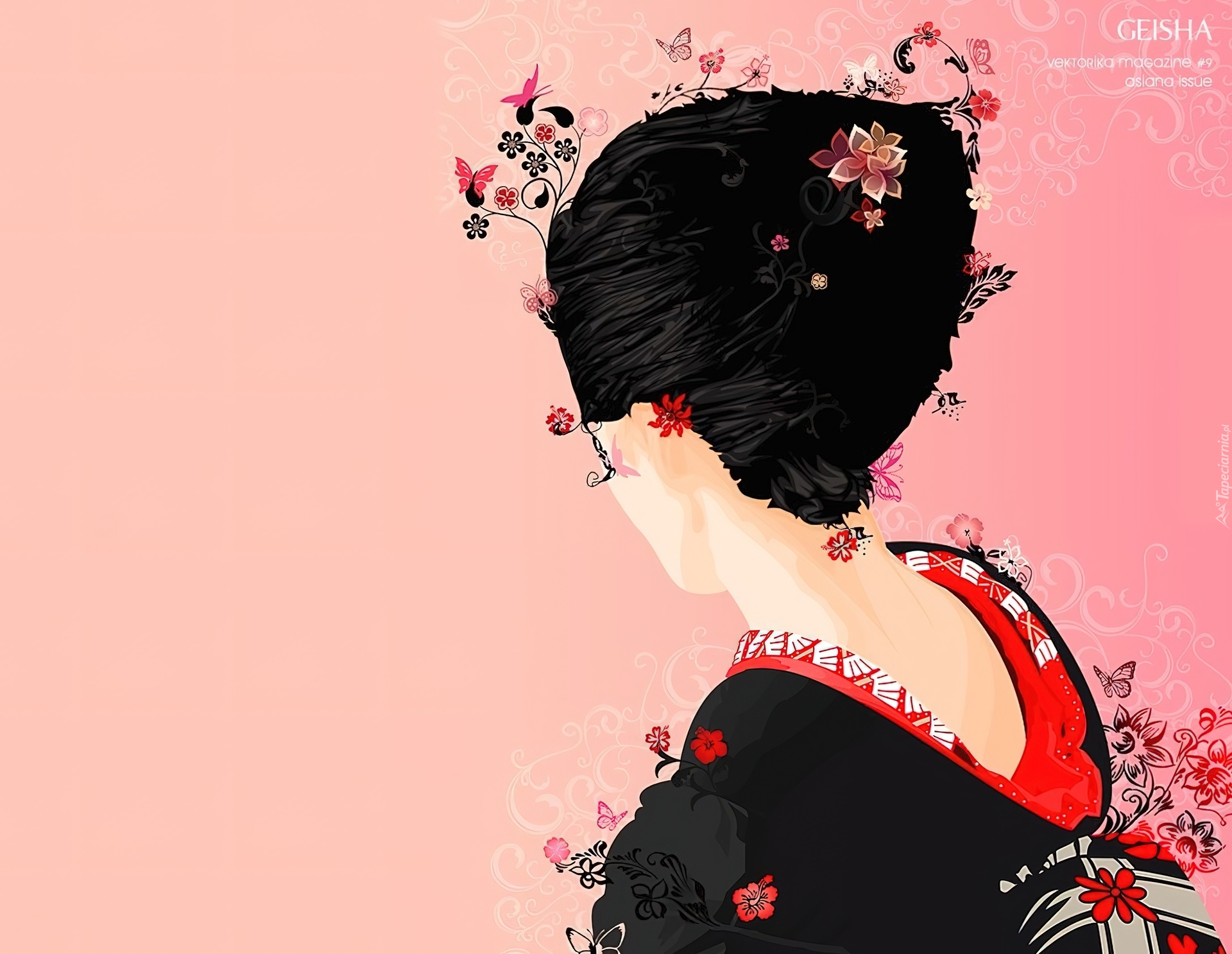Edytor tapety: Kobieta, Geisha, Kwiaty