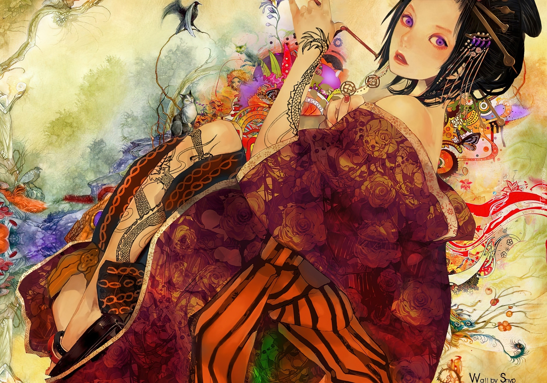 Edytor tapety: Japonka, Kimono, Tatuaże