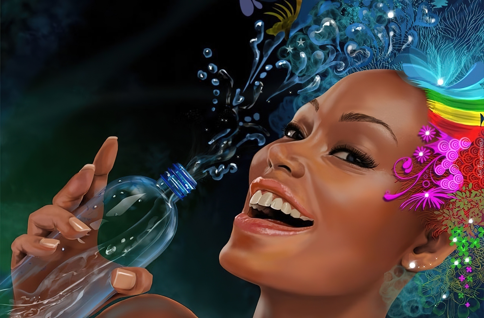 Edytor tapety: Wesoła, Kobieta, Butelka, Woda