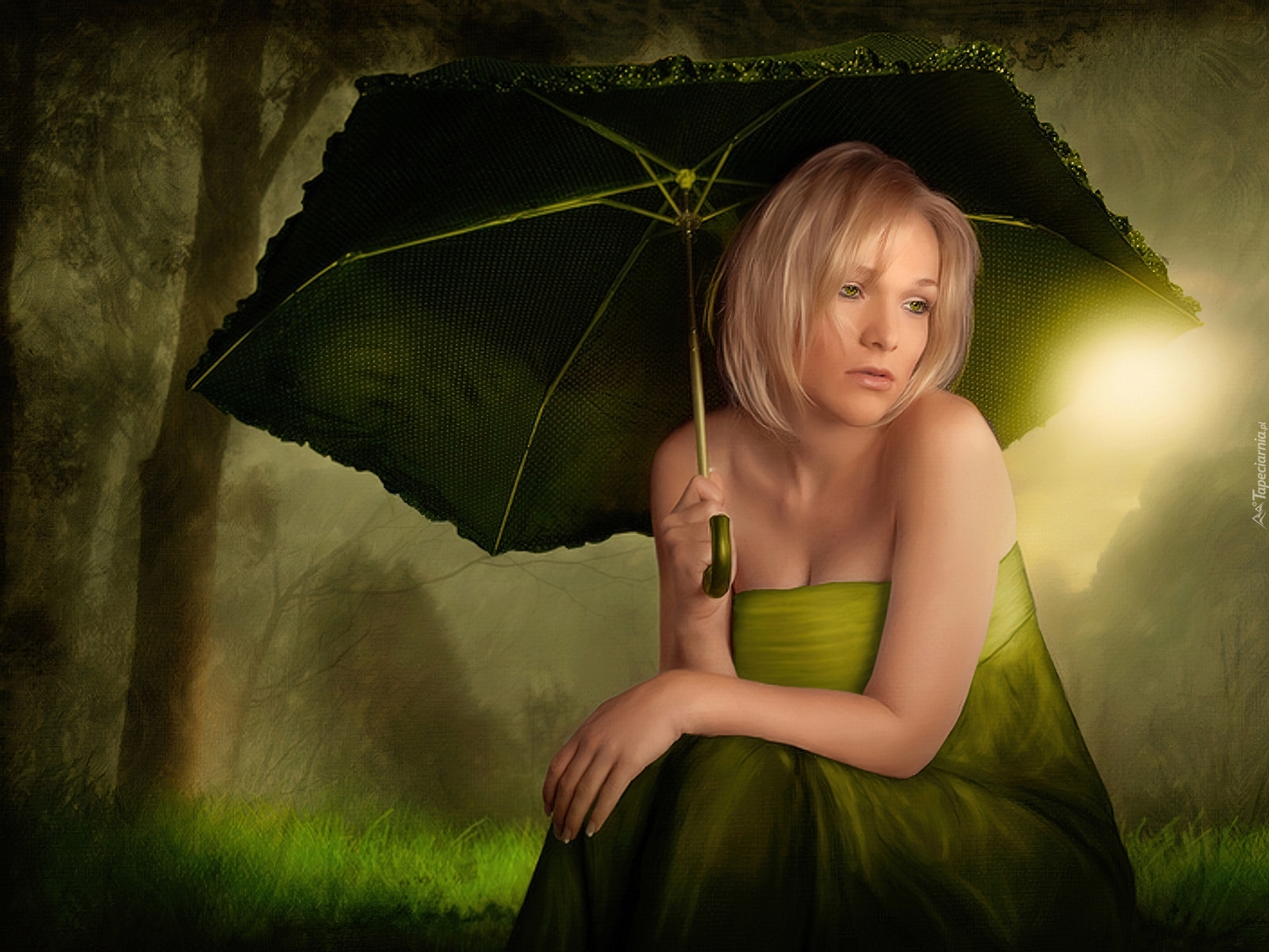 Edytor tapety: Zamyślona, Kobieta, Parasol