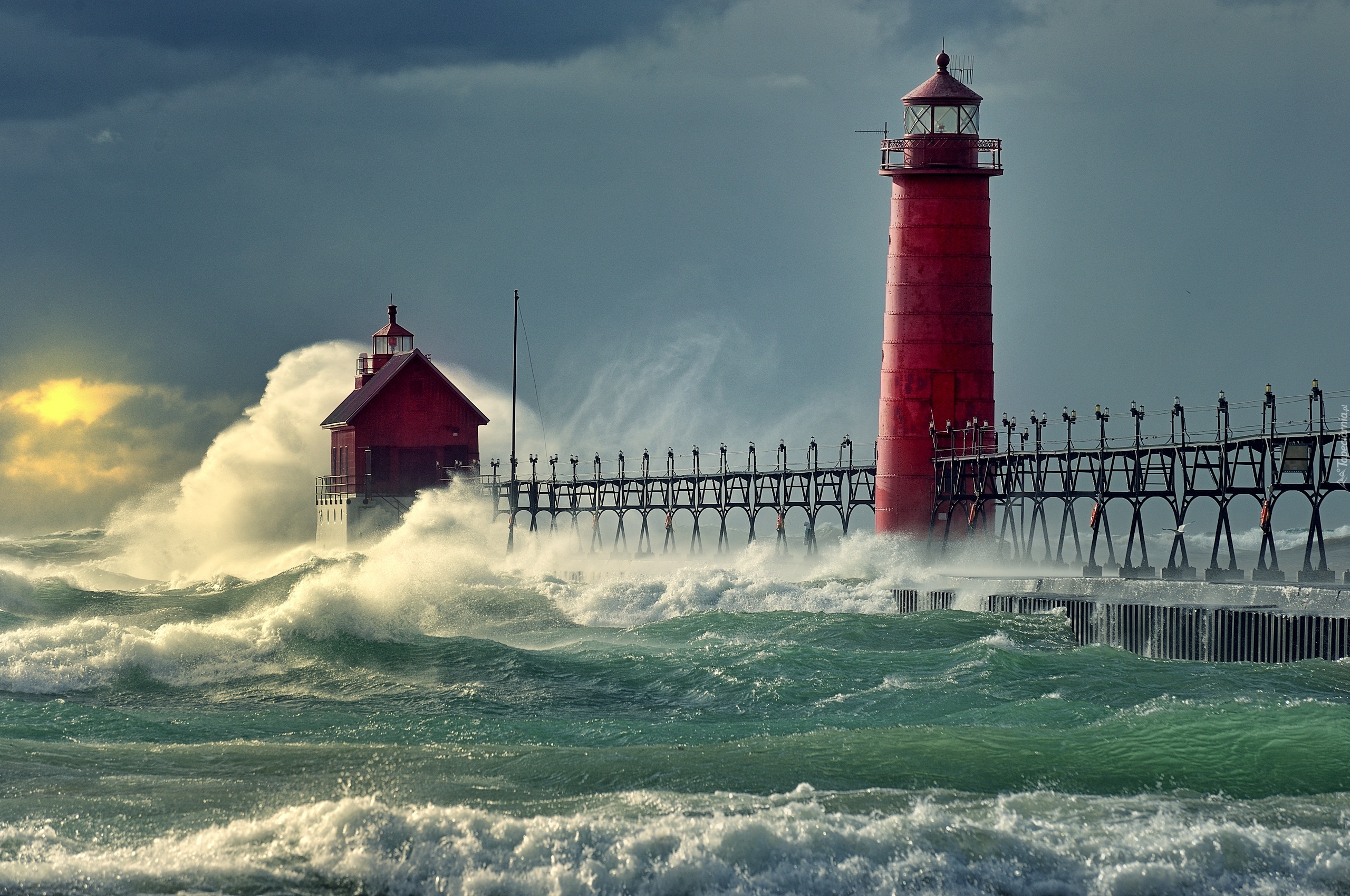 Edytor tapety: Morze, Latarnia, Sztorm, Fale