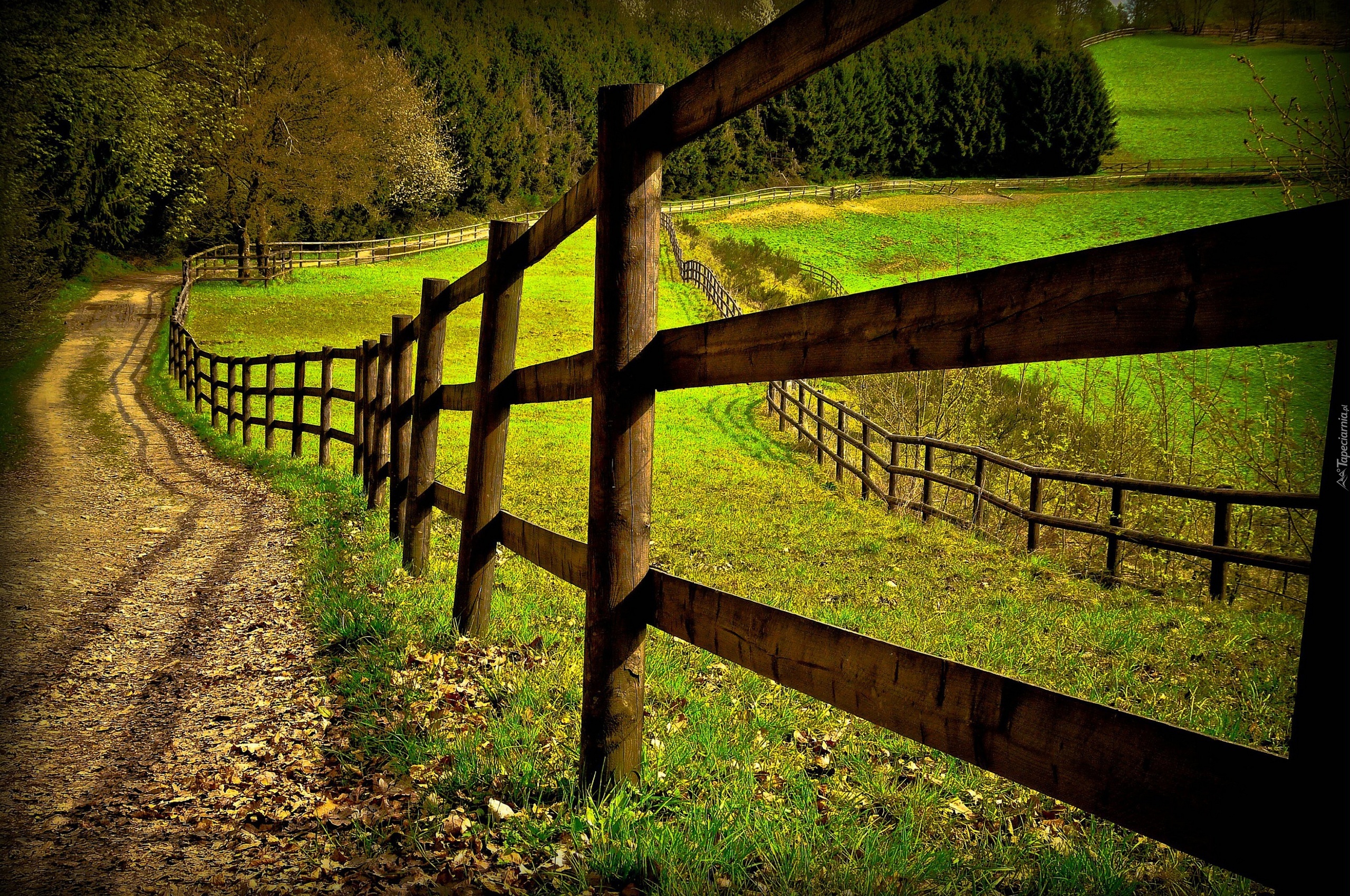Edytor tapety: Droga, Ogrodzenie, Drzewa