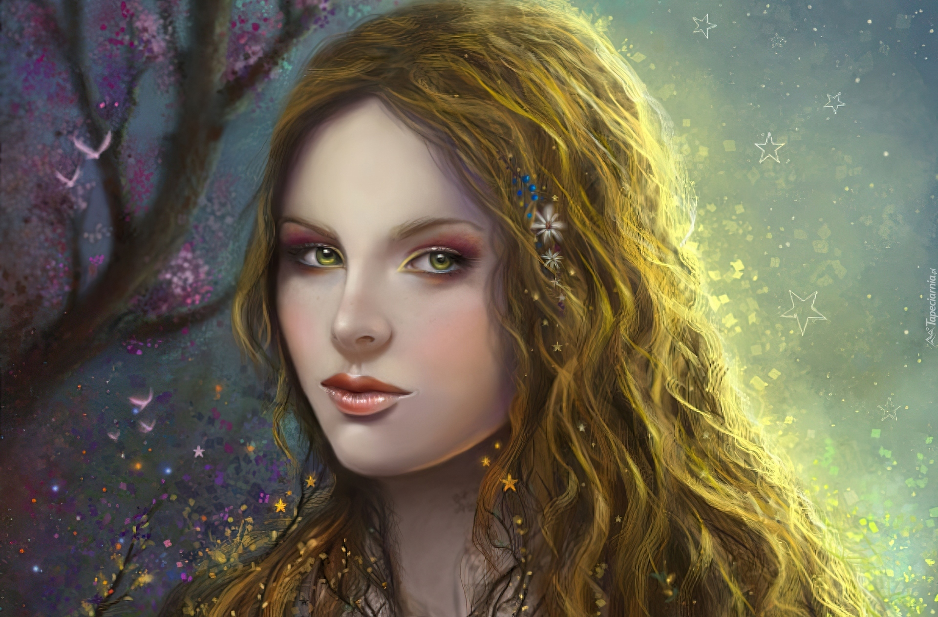 Edytor tapety: Twarz, Kobiety, Konar, Drzewa, Gwiazdki