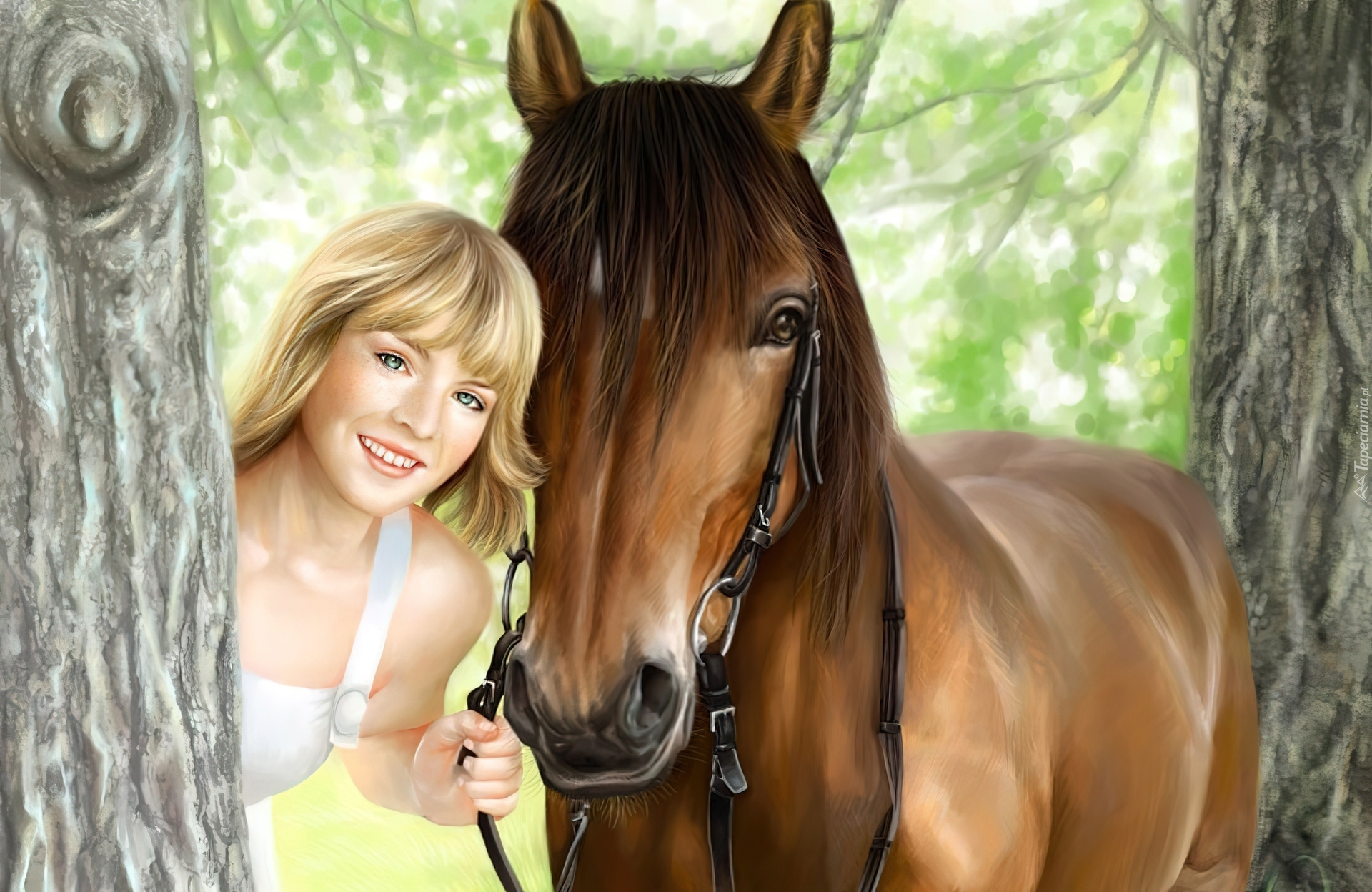 Edytor tapety: Kobieta, Koń