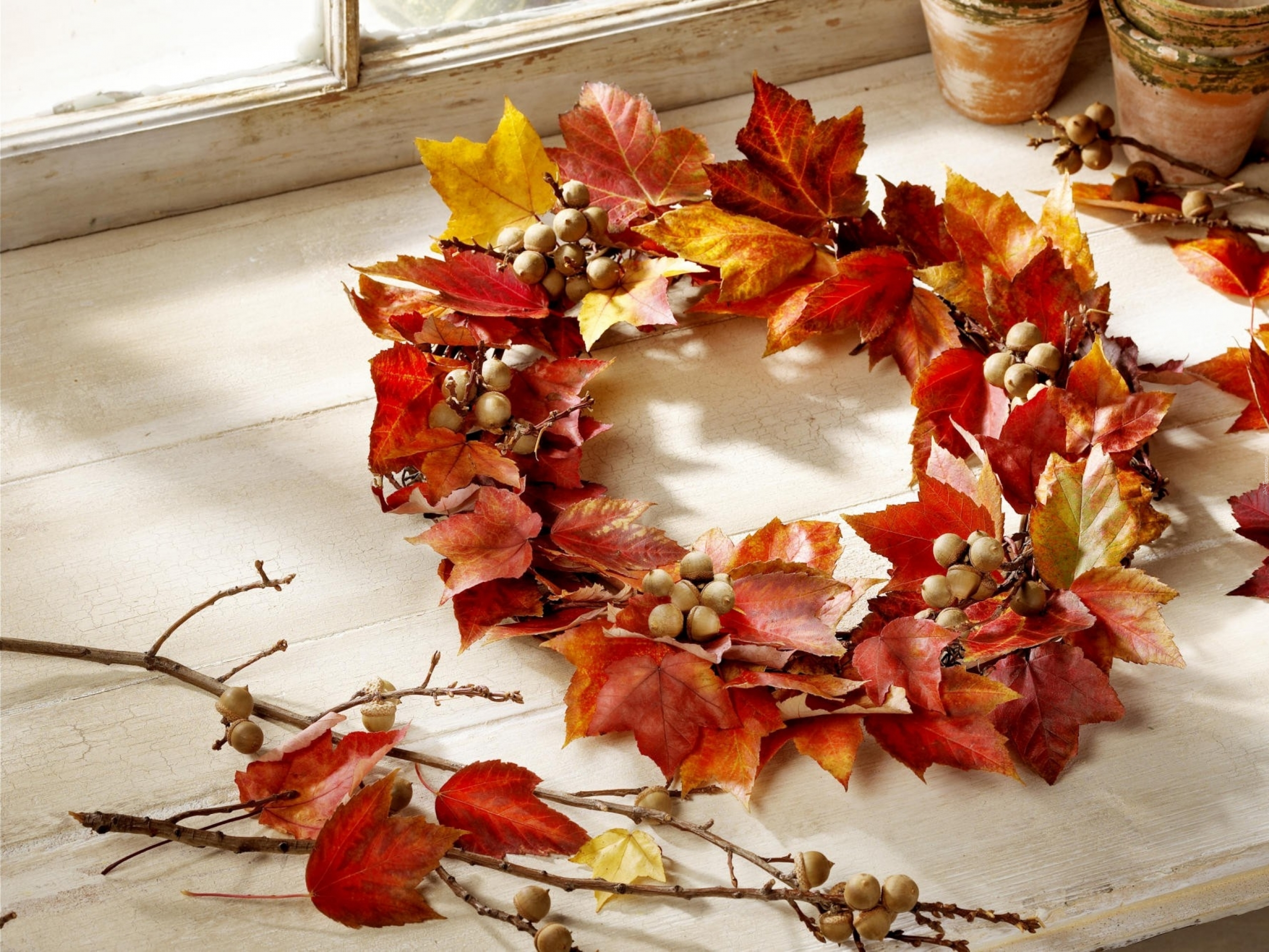 Edytor tapety: Jesienne, Liście, Wianek