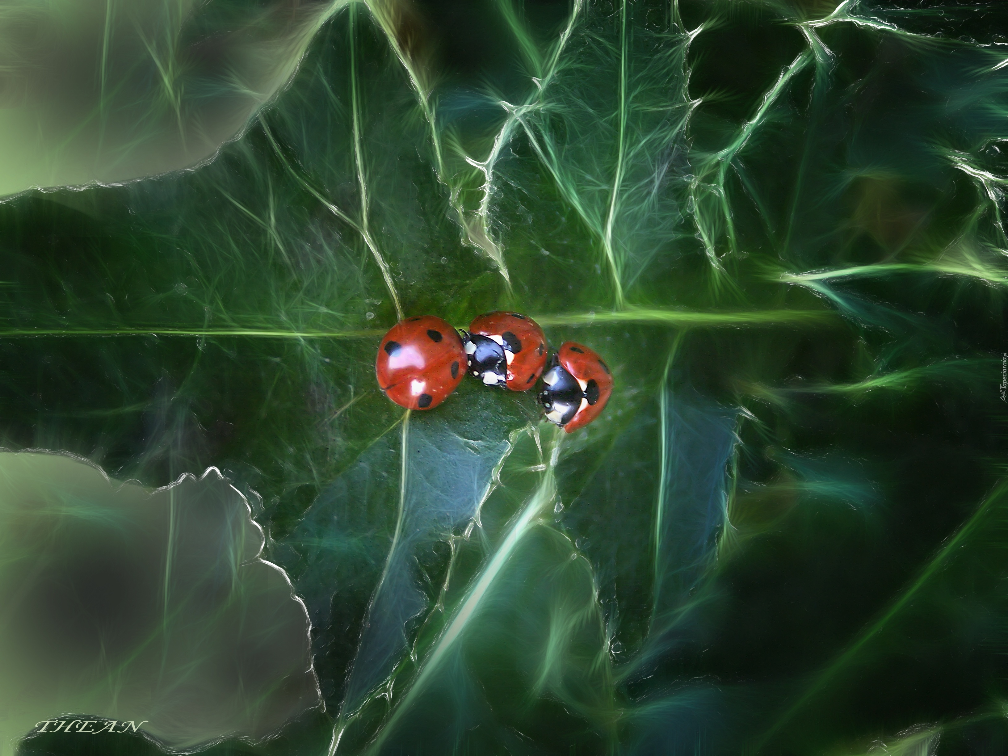 Edytor tapety: Trzy, Biedronki, Liście