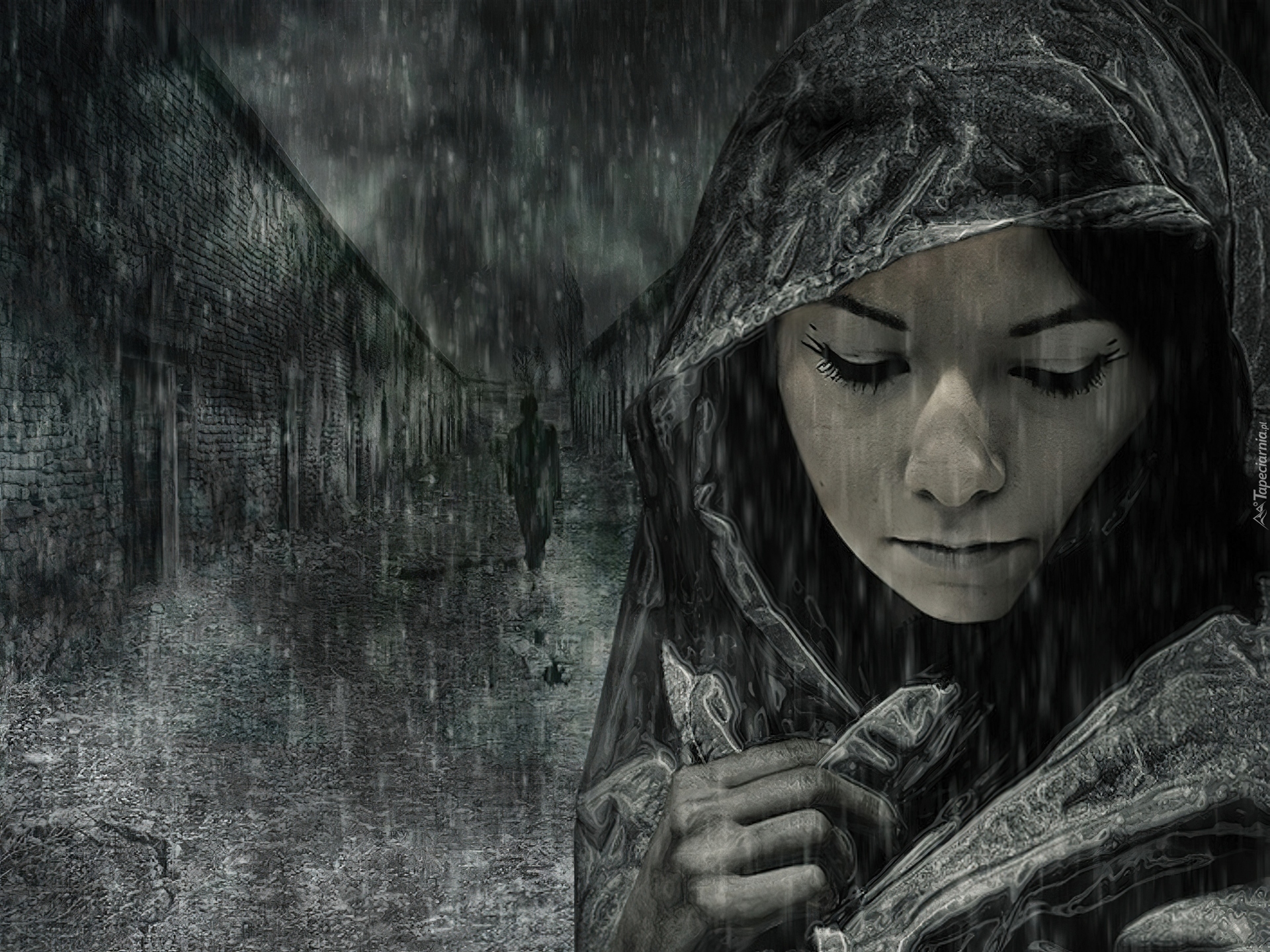 Edytor tapety: Kobieta, Kaptur, Deszcz