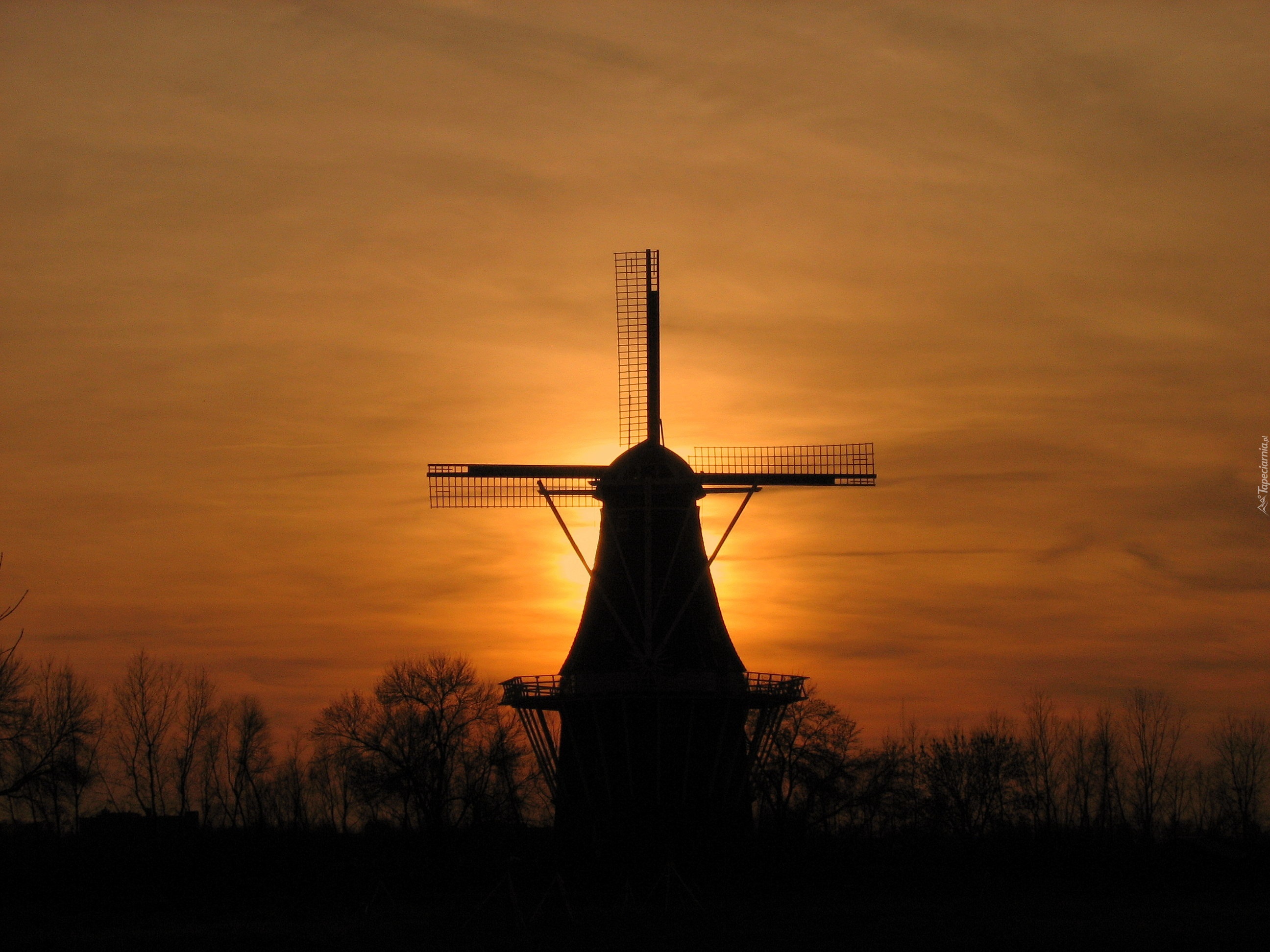 Edytor tapety: Wiatrak, Zachód, Słońca