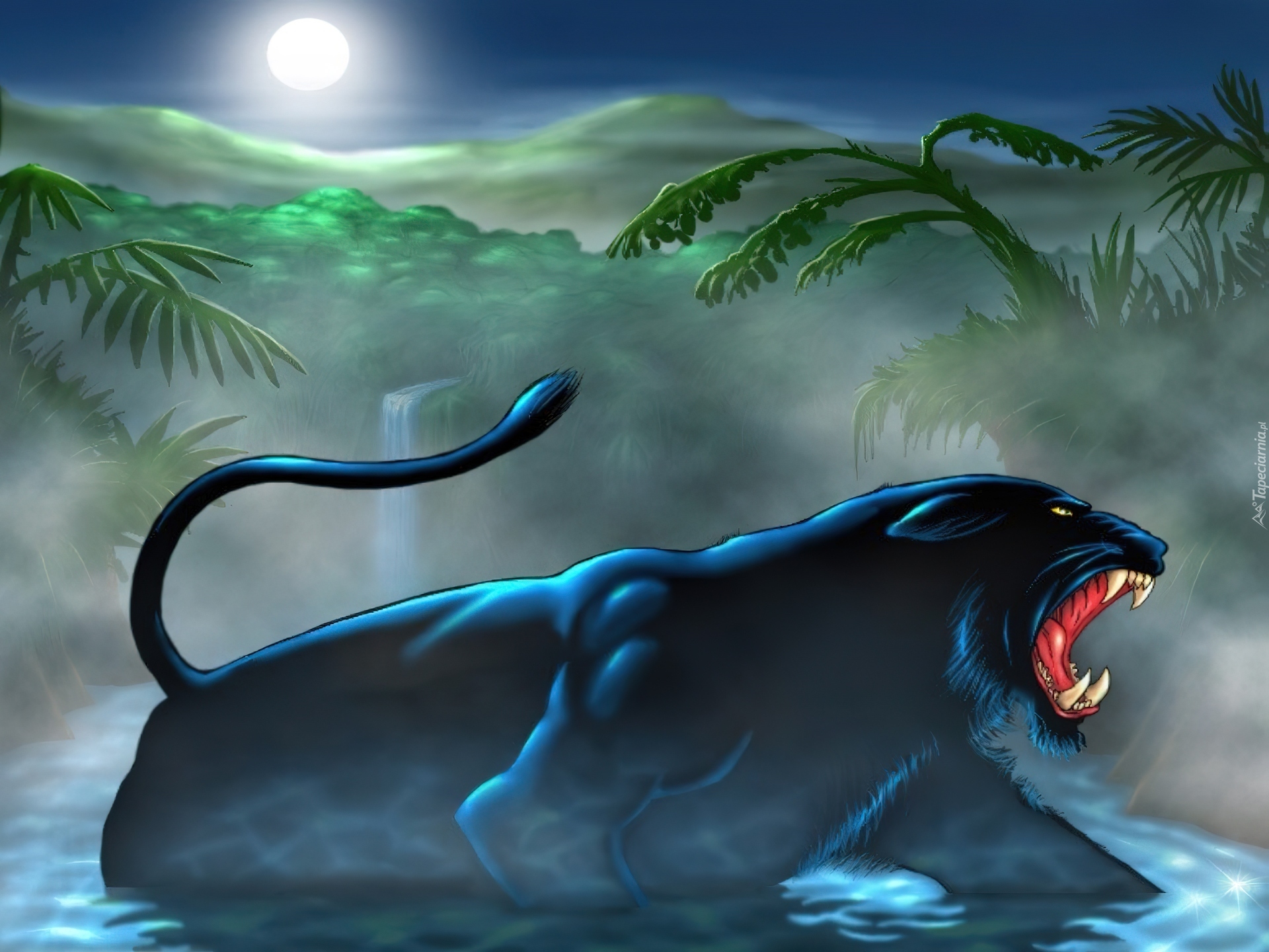 Edytor tapety: Puma, Woda, Palmy, Księżyc