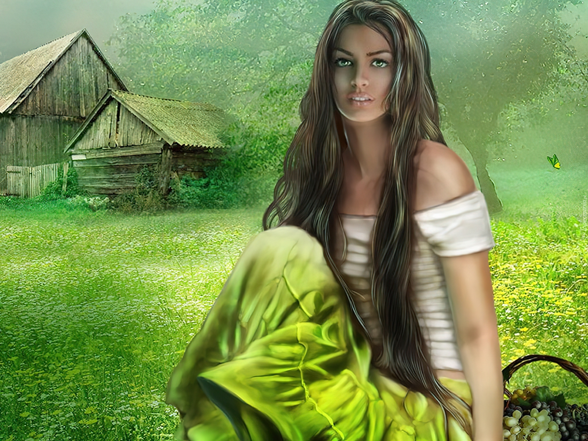 Edytor tapety: Kobieta, Łąka, Drzewa